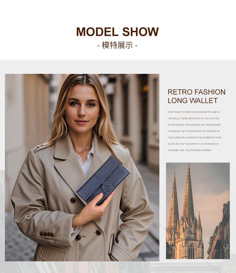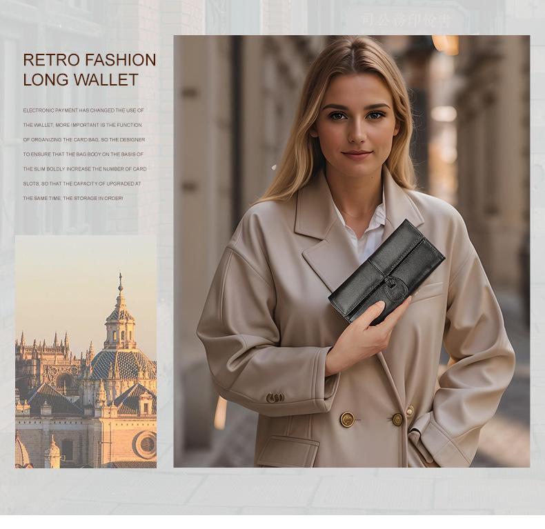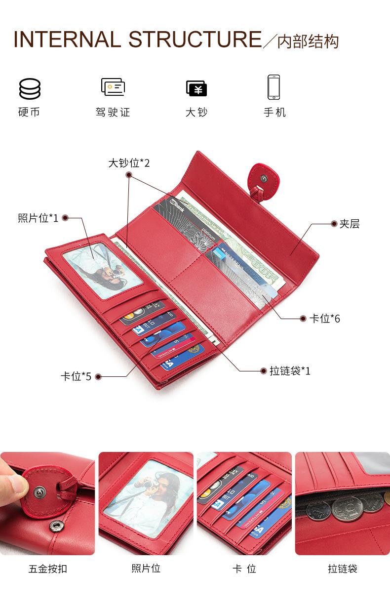 Cartera de hombre con dos bolsillos, billetera larga con ranuras para múltiples tarjetas, bolso de mano de cuero genuino para hombre, bolso de mano, negocio de suministro transfronterizo