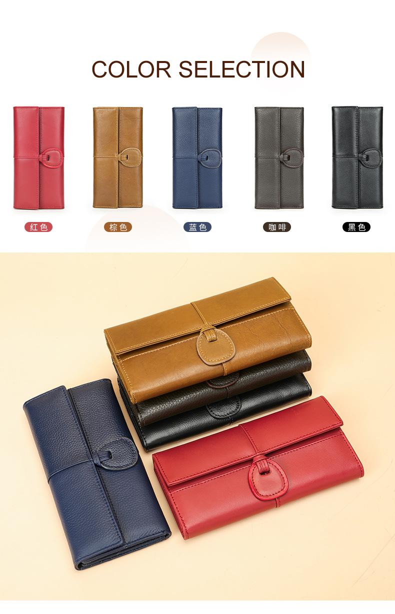 Cartera de cuero genuino para hombre, antimagnética, con RFID, larga, con cordón ajustable y doble pliegue, informal, de piel de vaca, monedero.