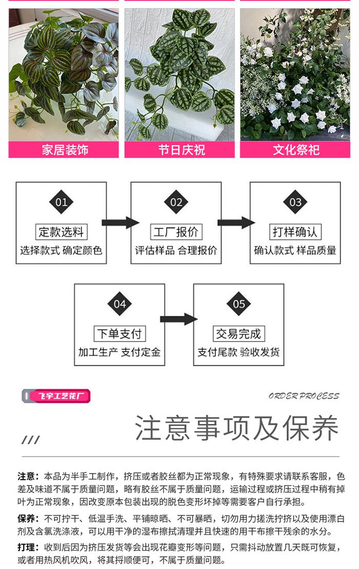 Estimado cliente, nuestra tienda produce y vende al por mayor todo tipo de flores y plantas artificiales. En principio, solo vendemos artículos grandes, pero también aceptamos muestras. Sin embargo, no se admiten devoluciones ni cambios de los productos de muestra. Por ejemplo, si compra solo uno o dos ejemplares de cada tipo, comprar uno o dos de varias variedades se considera una muestra. No se admiten reembolsos. Le rogamos que lo lea detenidamente antes de realizar un pedido. Disculpe las molestias. ¡Gracias por su cooperación!