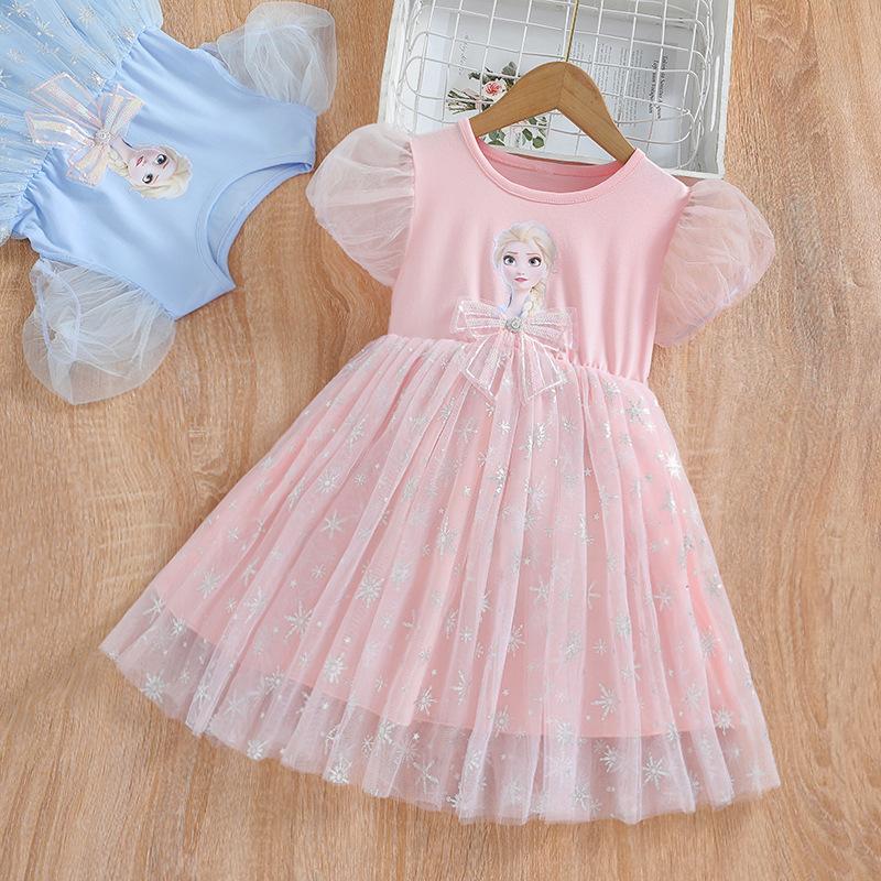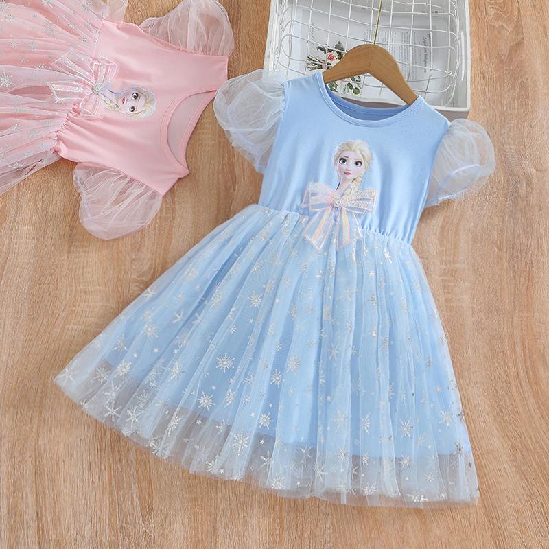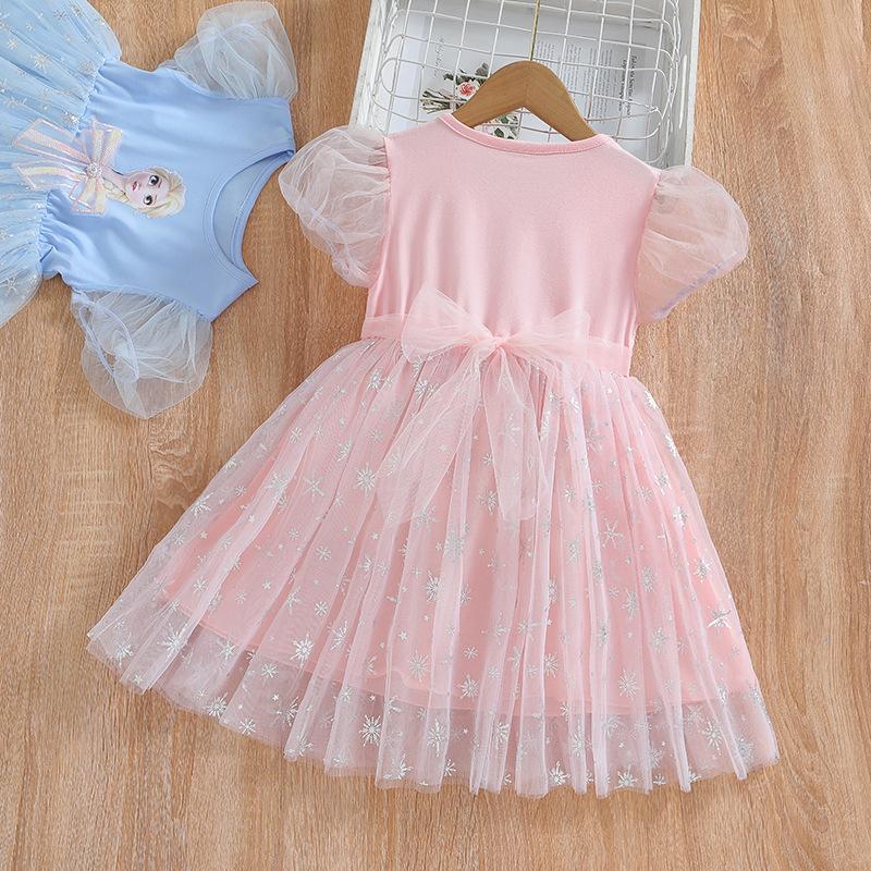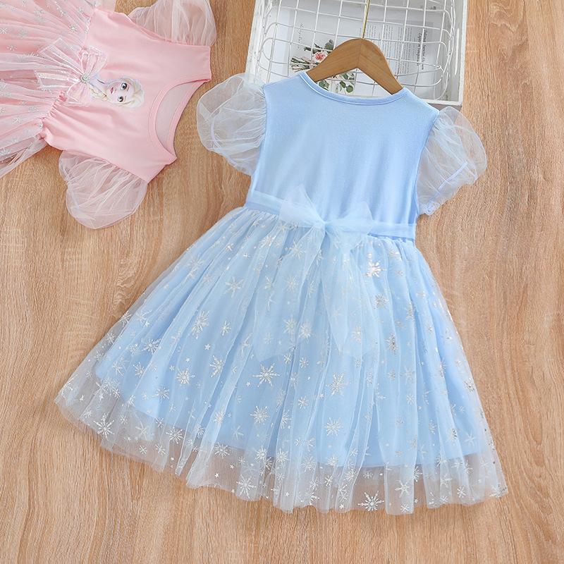 Vestido de Niña Vestido de Verano 2025 Estilo Algodón Frozen Elsa Falda de Princesa Falda de Malla para Niños Bebé