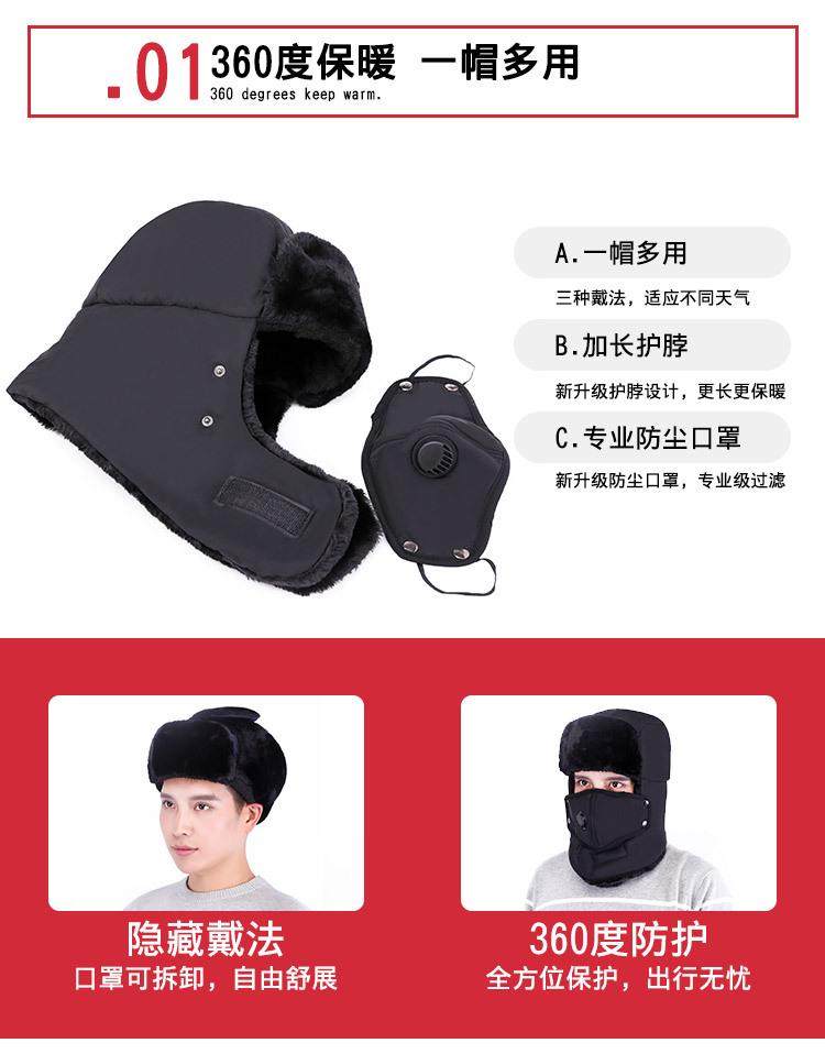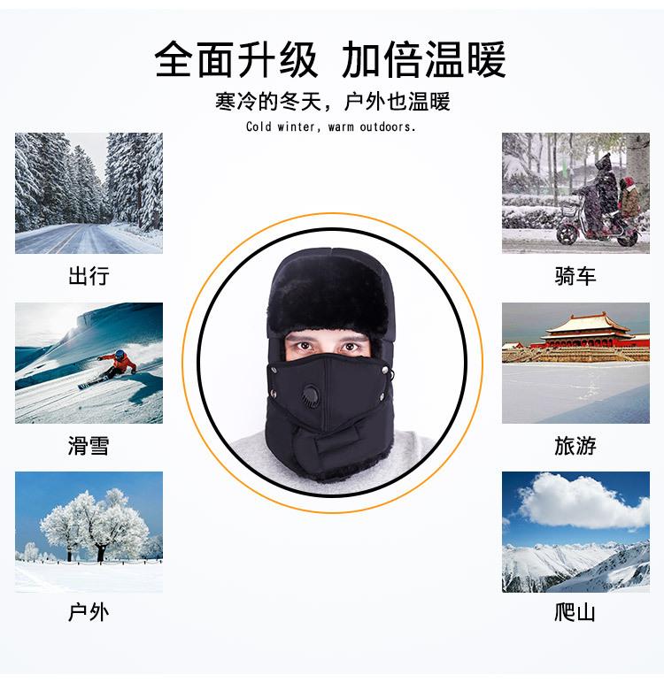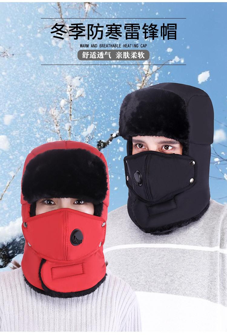 Gorro de invierno a prueba de frío para hombre, gorro protector de orejas para exteriores, gorro de ciclismo con válvula de respiración coreana, gorro cálido Lei Feng para mujer, admite personalización