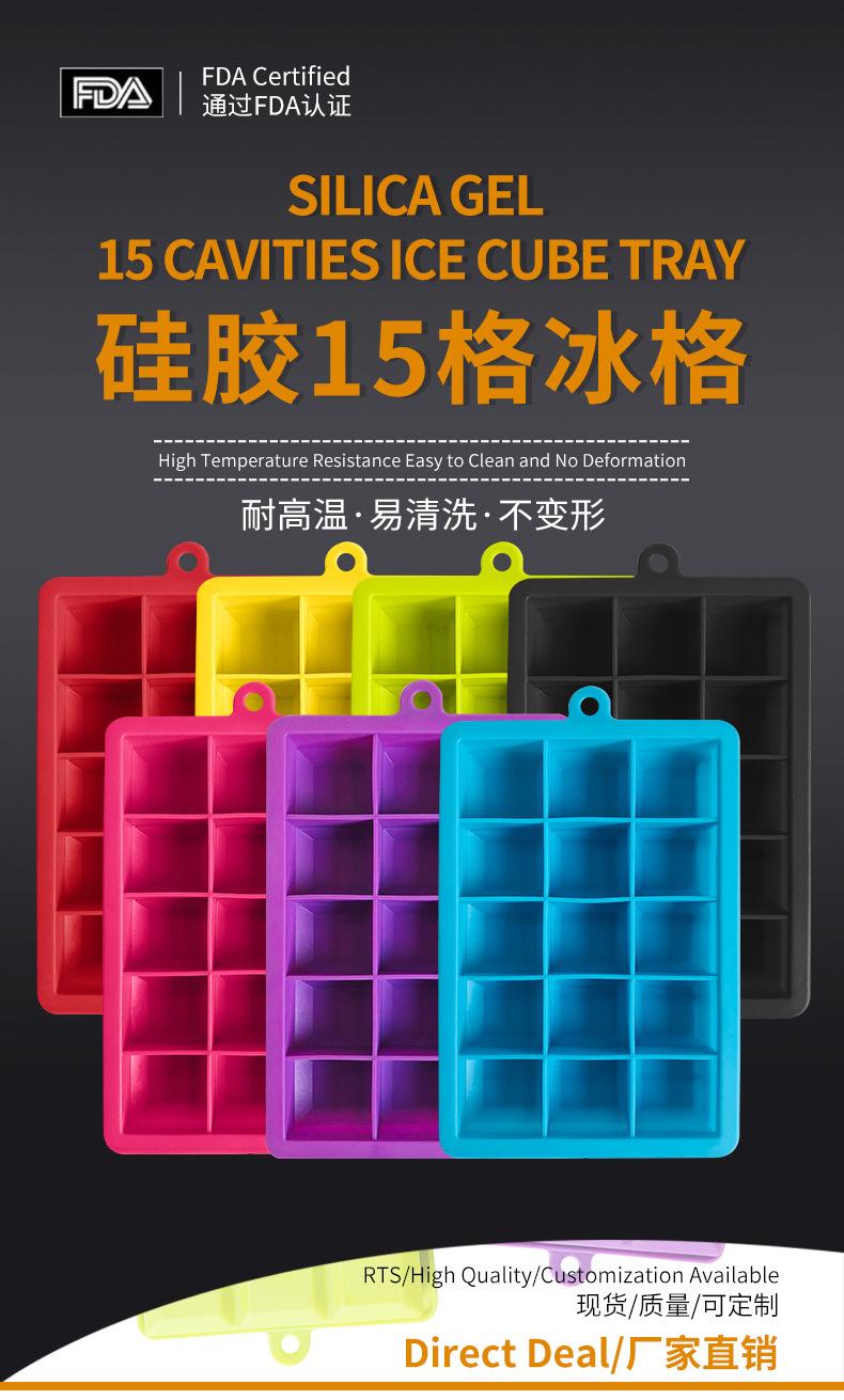 Hielera de Silicona Cuadrada de 15 Cavidades con Tapa Molde para Uso Doméstico Fabricador de Hielo Cubitos de Hielo Venta al por Mayor en Stock Congelación Rápida