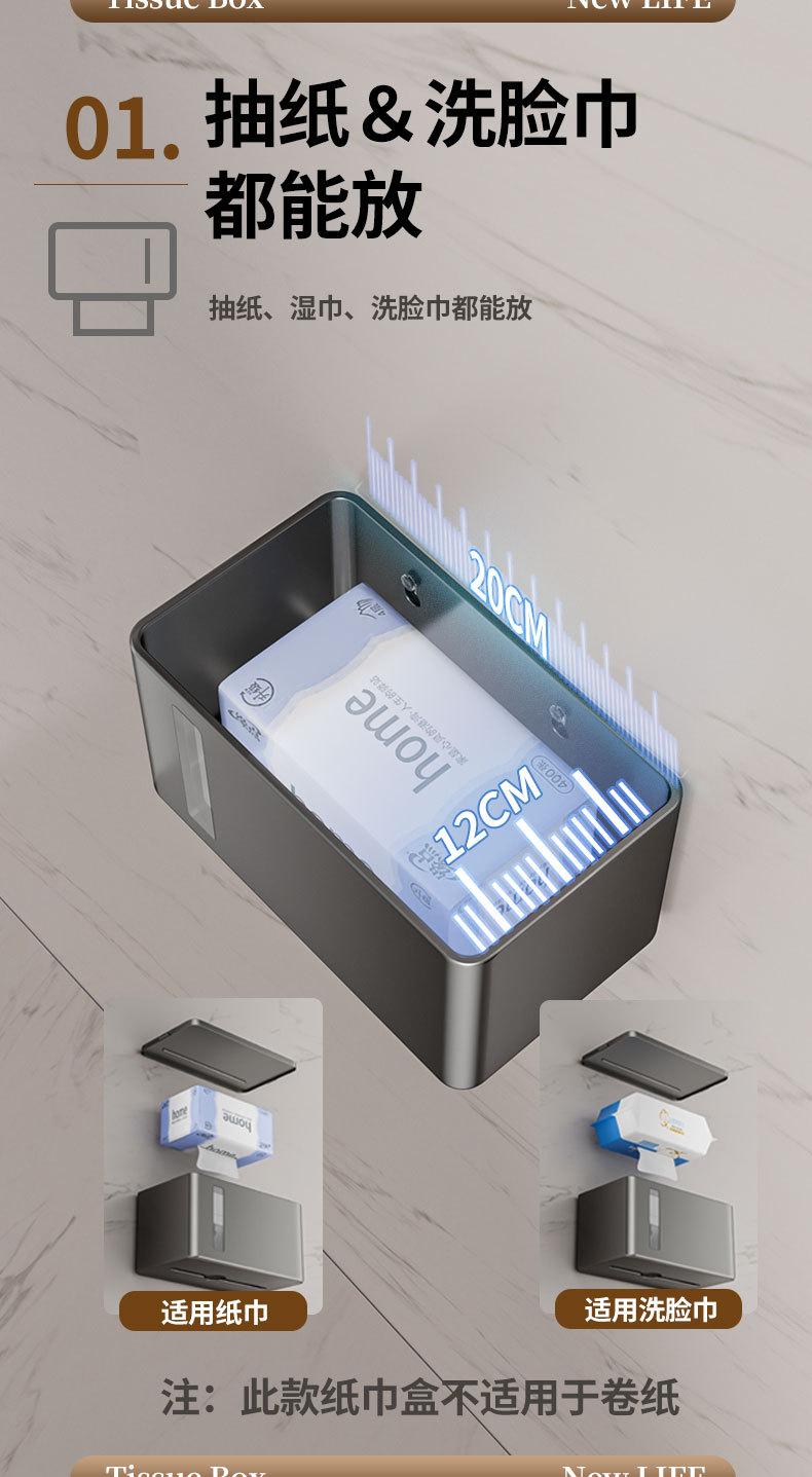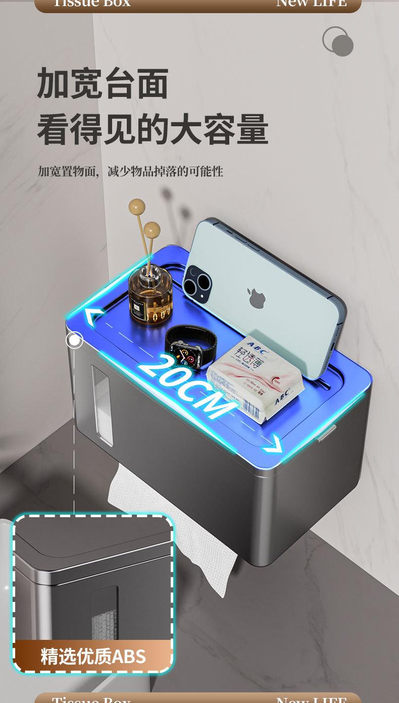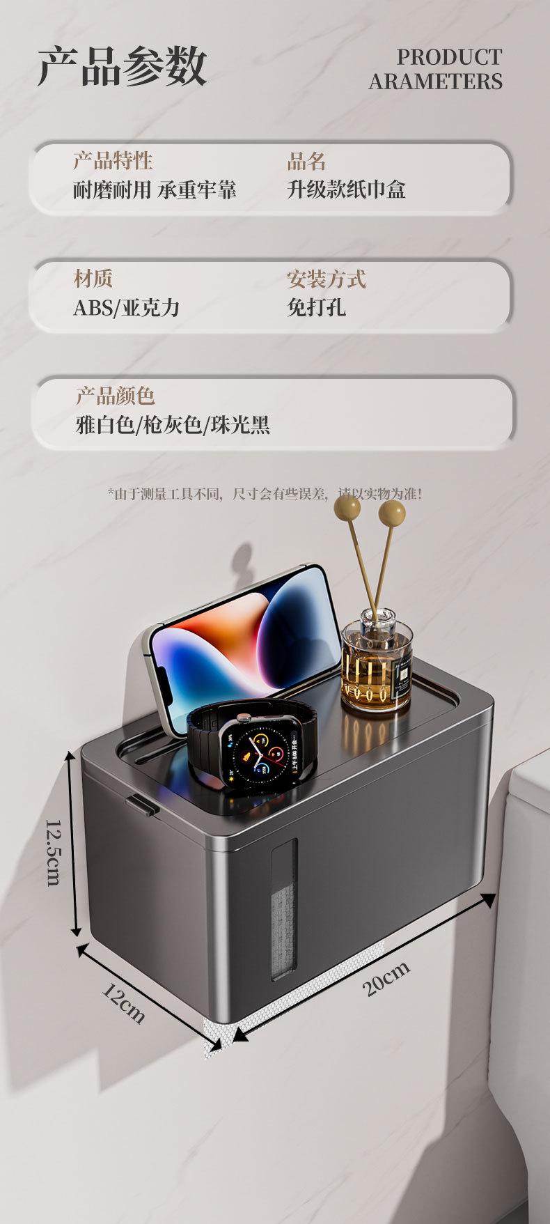 Caja de papel higiénico sin perforaciones para colgar en la pared, soporte para rollos de papel higiénico, caja de almacenamiento de papel impermeable multiusos