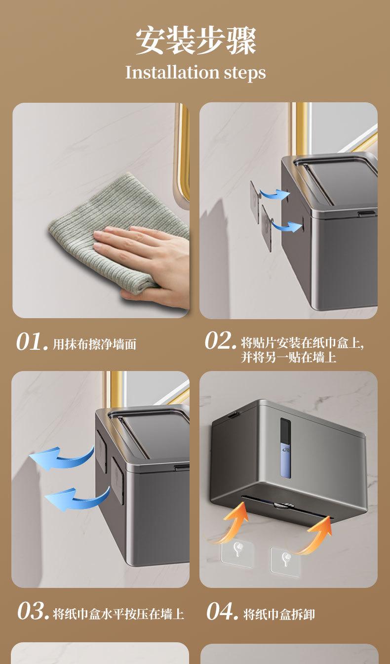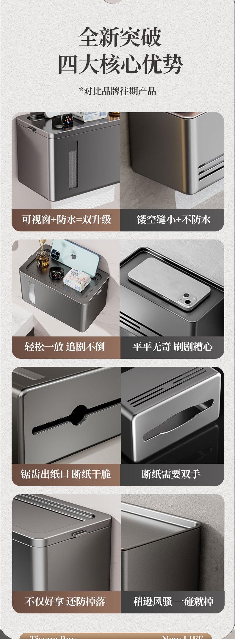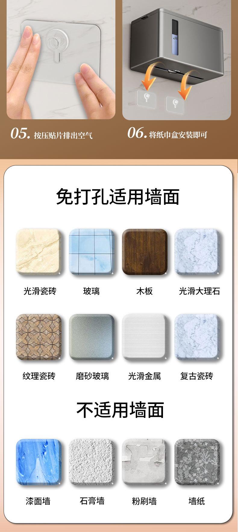 Caja de papel higiénico sin perforaciones para colgar en la pared, soporte para rollos de papel higiénico, caja de almacenamiento de papel impermeable multiusos