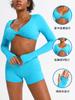 Traje de yoga ajustado y desnudo para mujer, de otoño e invierno, con cuello redondo y manga larga, top deportivo ajustado y adelgazante.