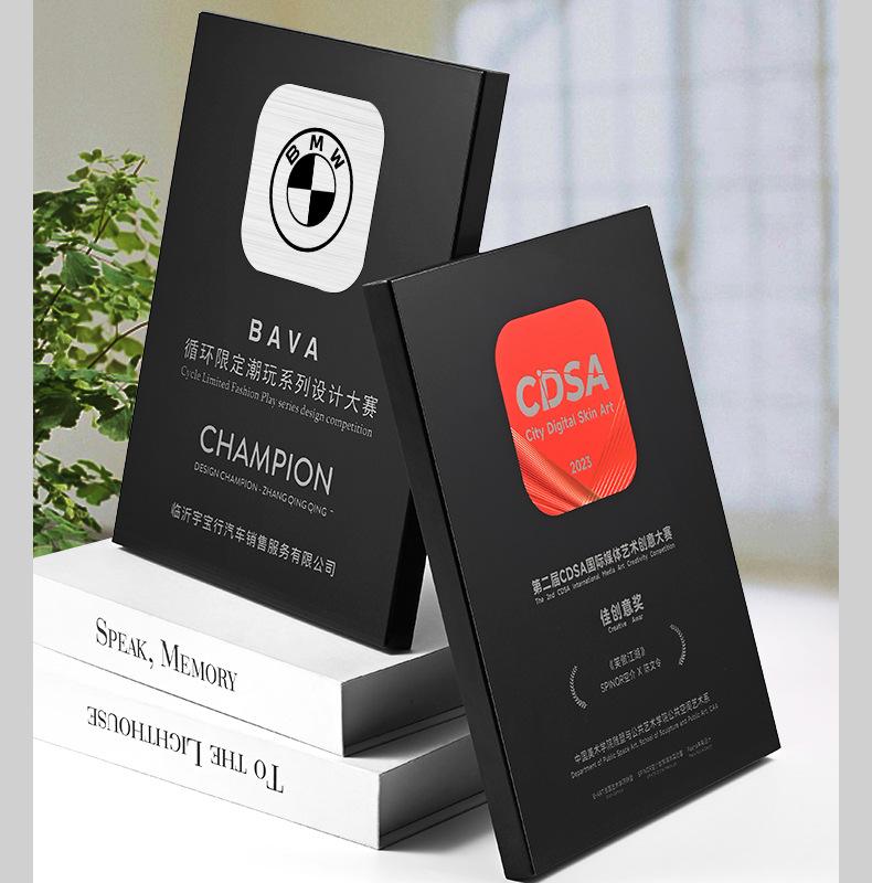 Diseño y producción de medallas, placa de certificado de metal creativa, negra, de alta gama, elegante, para unirse a la tarjeta de autorización del agente, letras