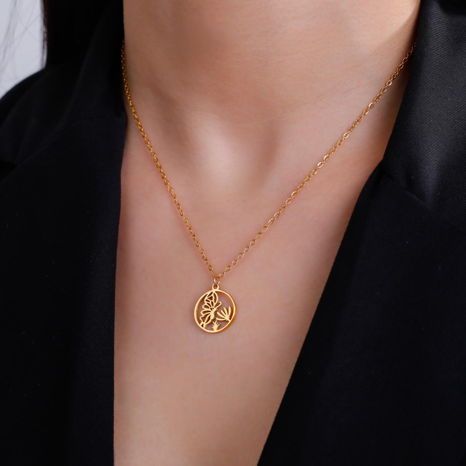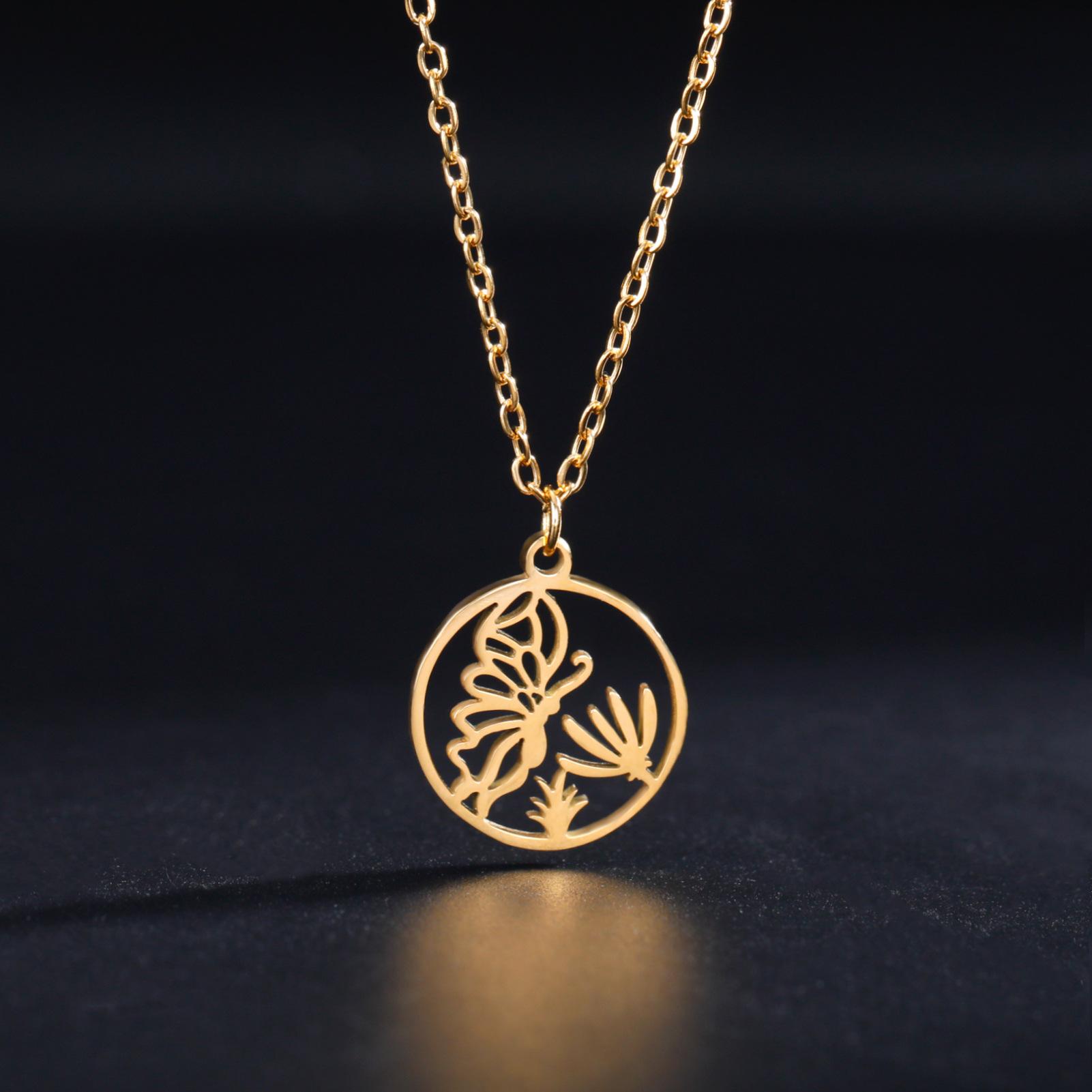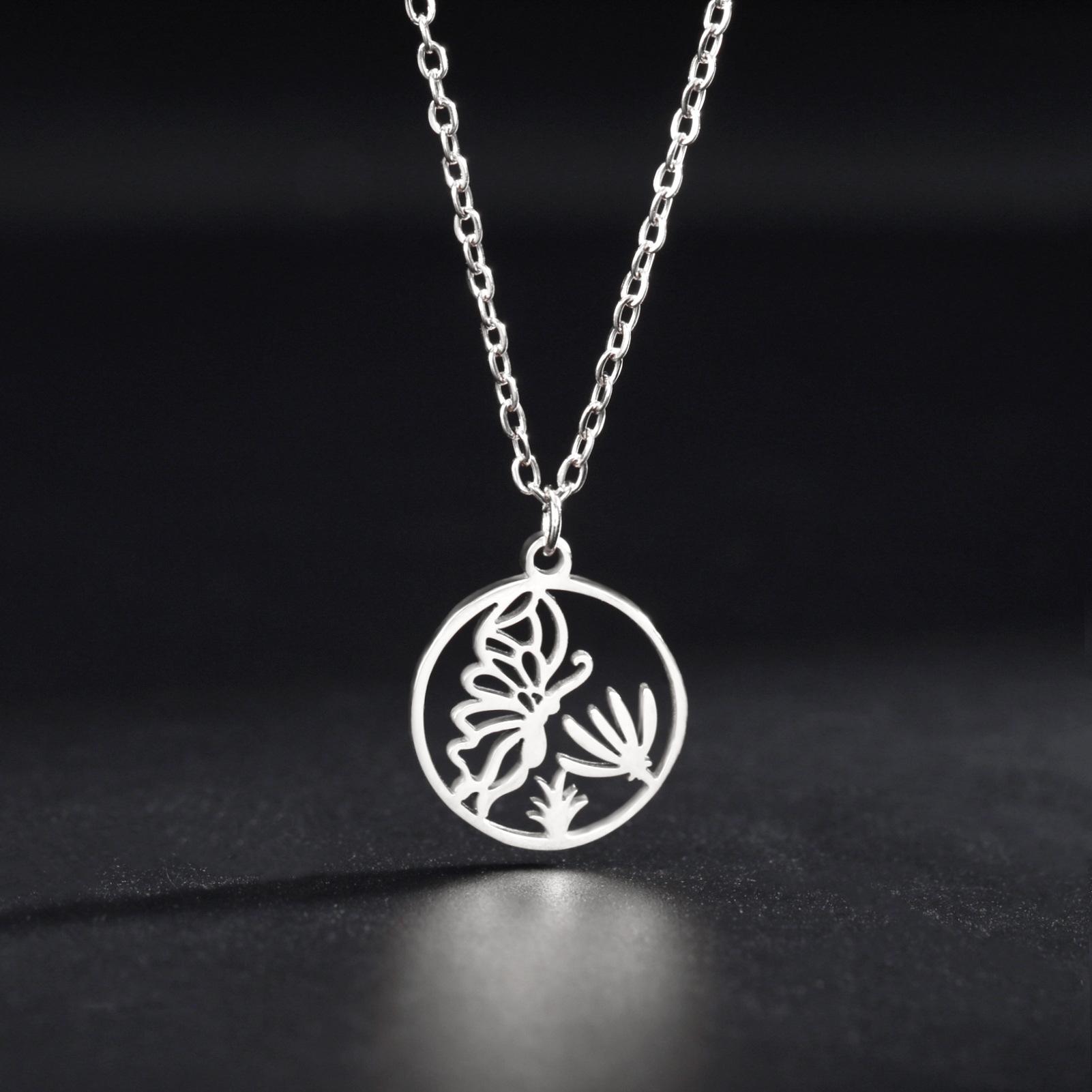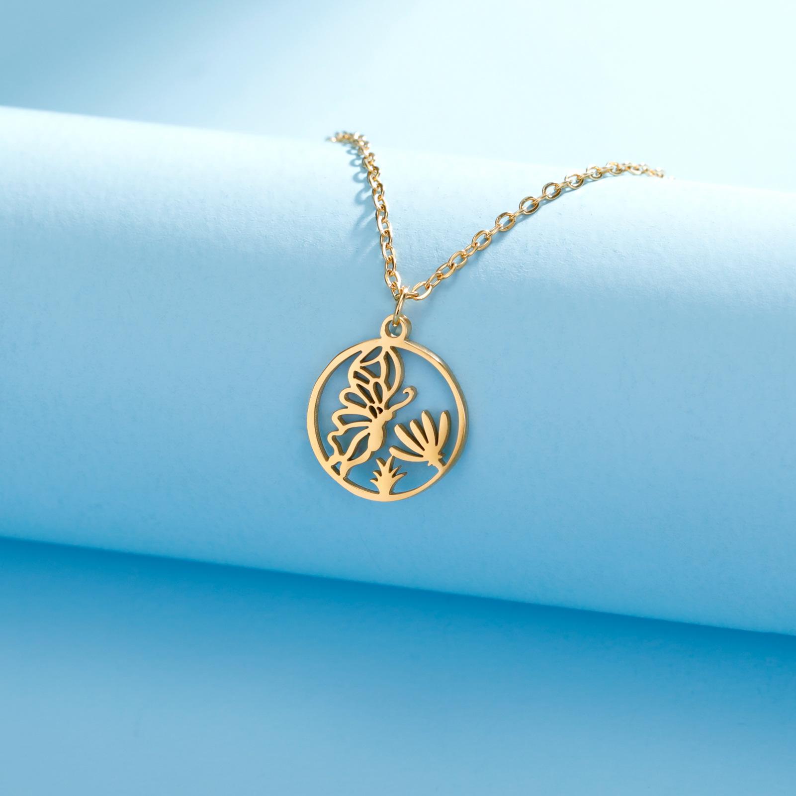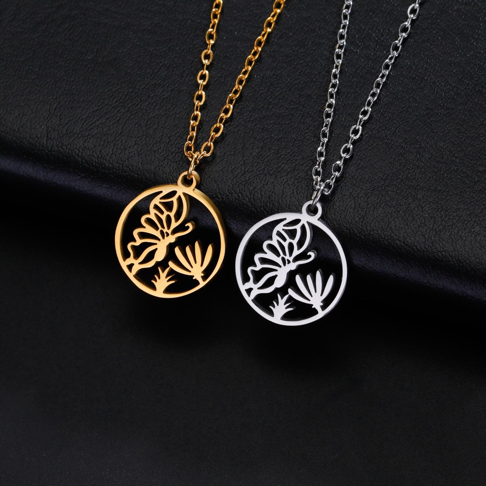 Ventas Directas de Fábrica Transfronterizas Más Vendido Collar de Acero al Titanio Cortado Dibujo Animado Lindo Colgante de Mariposa Recolectora de Miel Collar de Acero Inoxidable