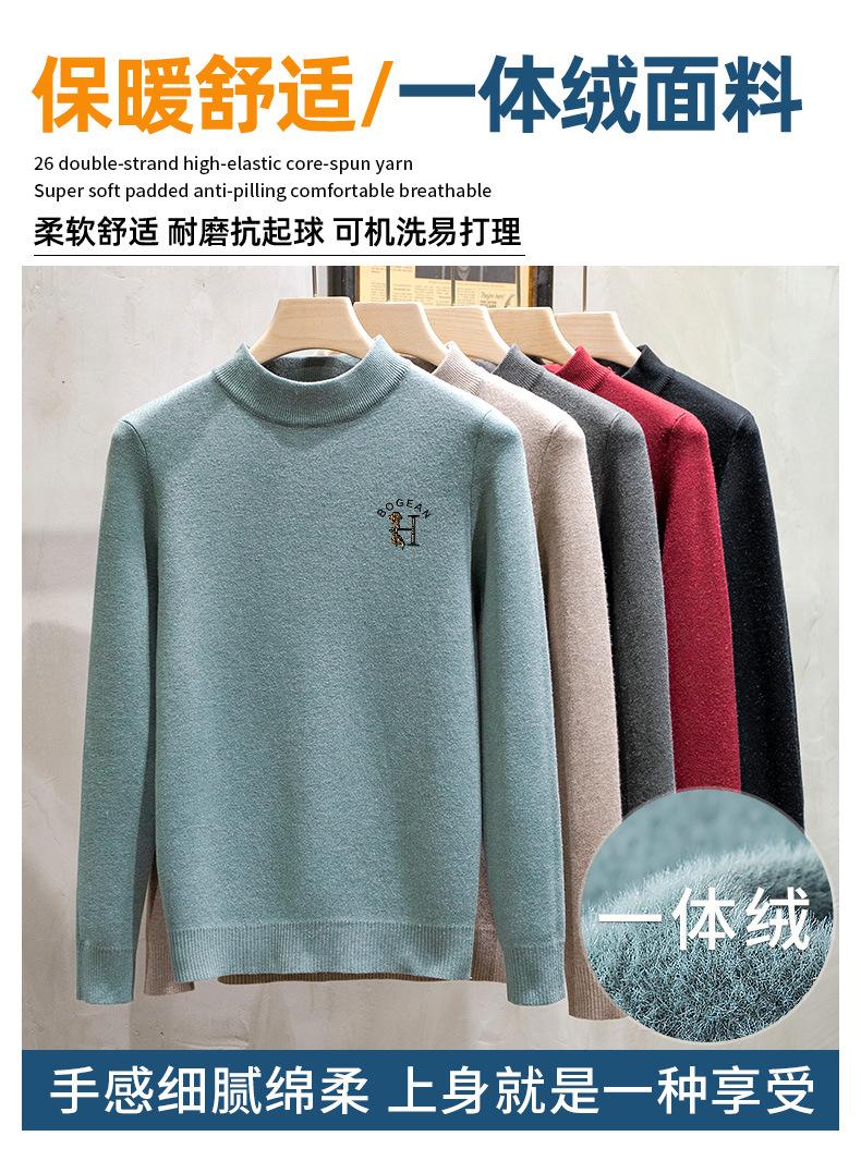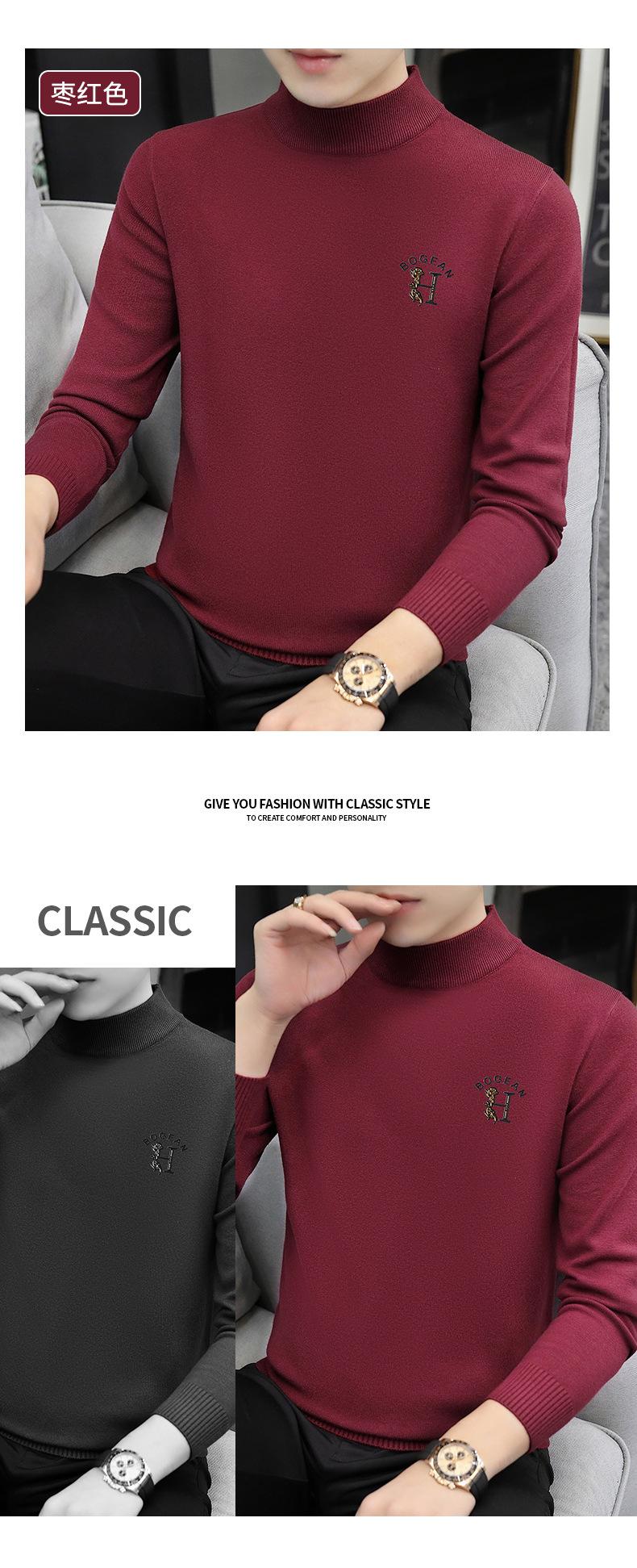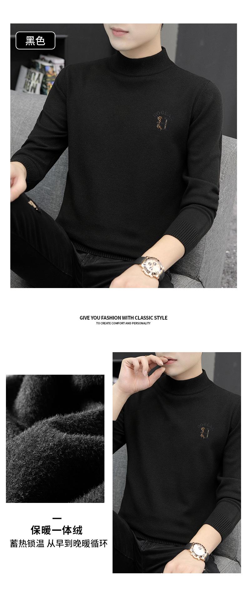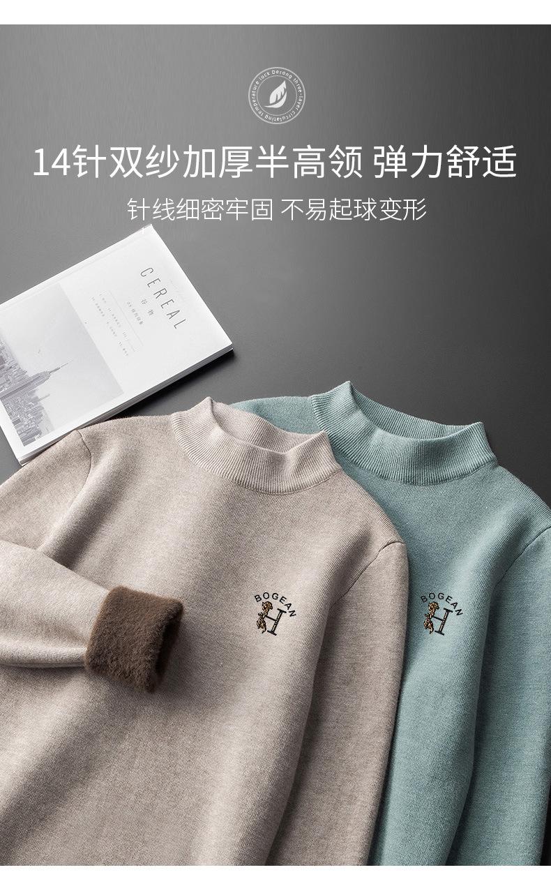 Suéter de medio cuello alto para hombre, suéter de otoño e invierno cálido con forro polar engrosado, suéter de cuello medio, camisa básica de terciopelo de una pieza, suéter suéter