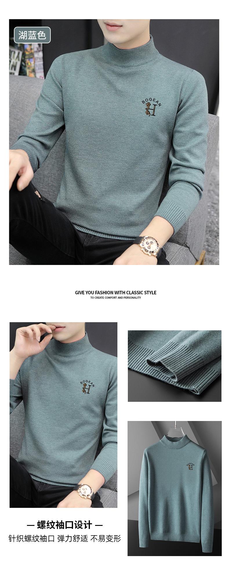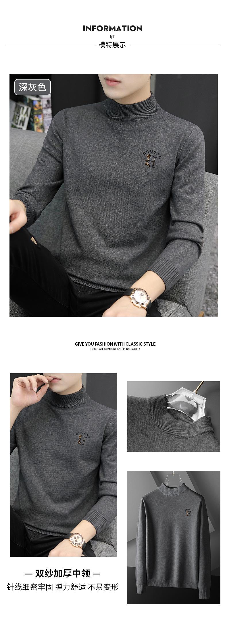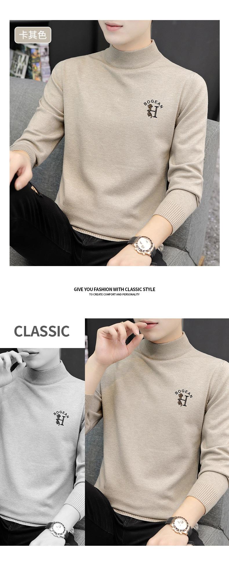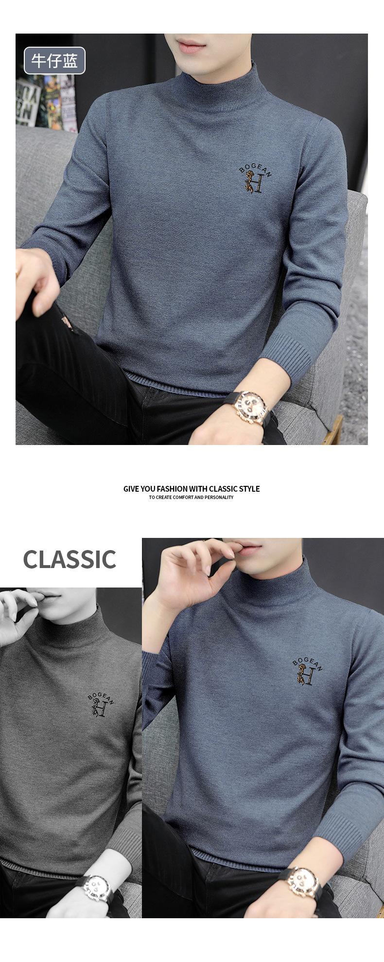 Suéter de medio cuello alto para hombre, suéter de otoño e invierno cálido con forro polar engrosado, suéter de cuello medio, camisa básica de terciopelo de una pieza, suéter suéter