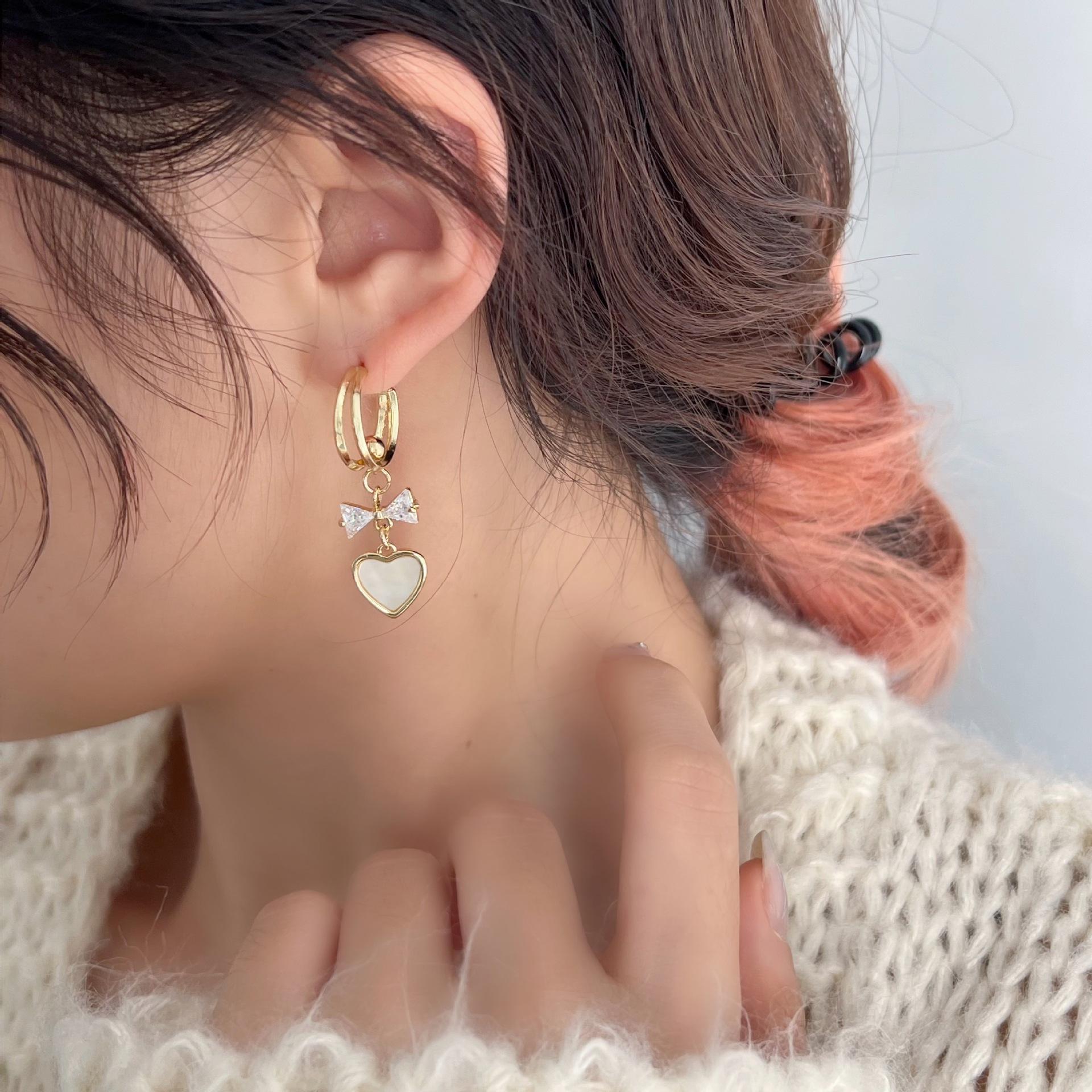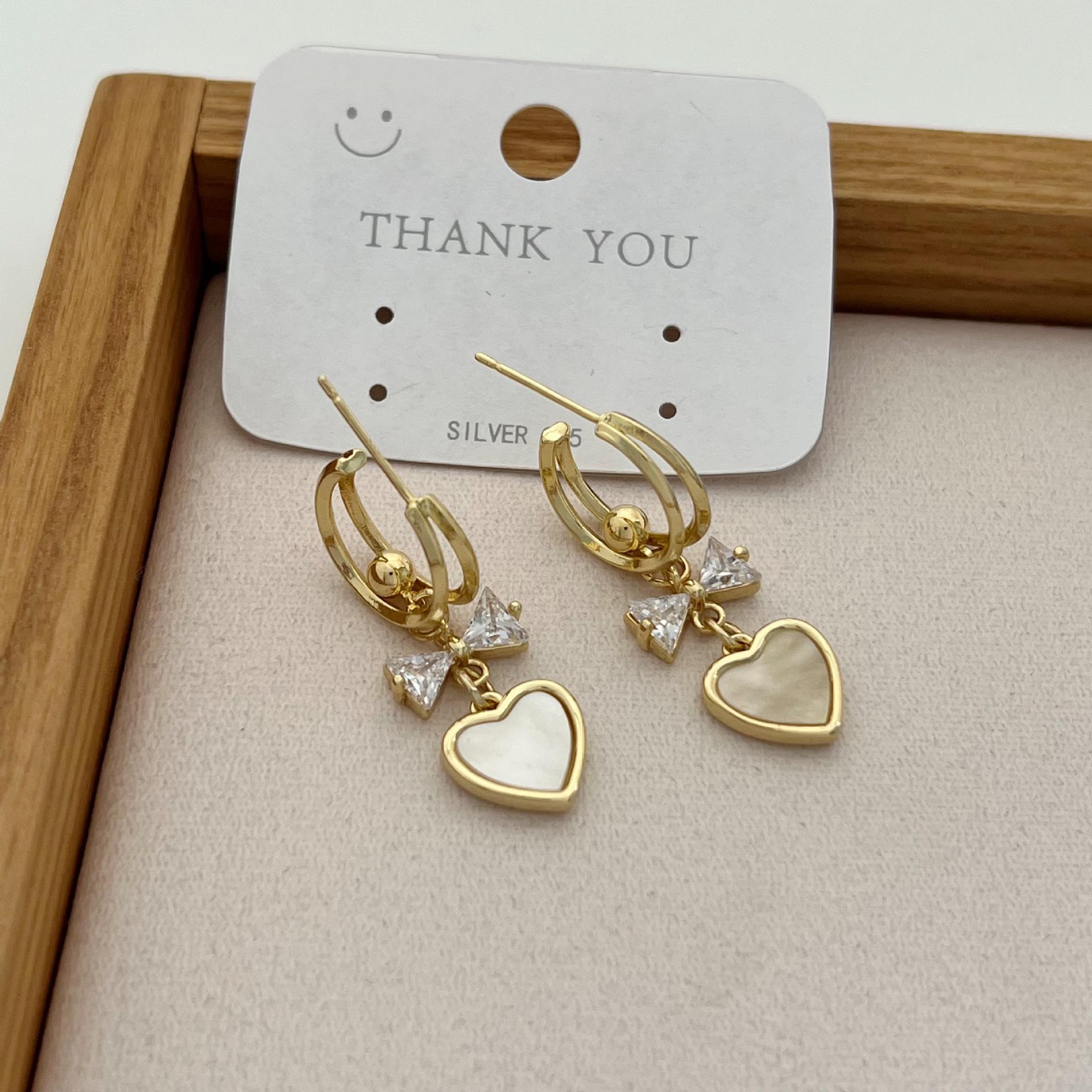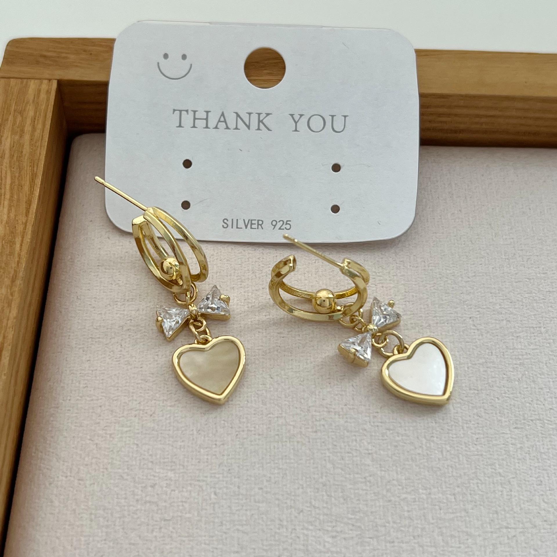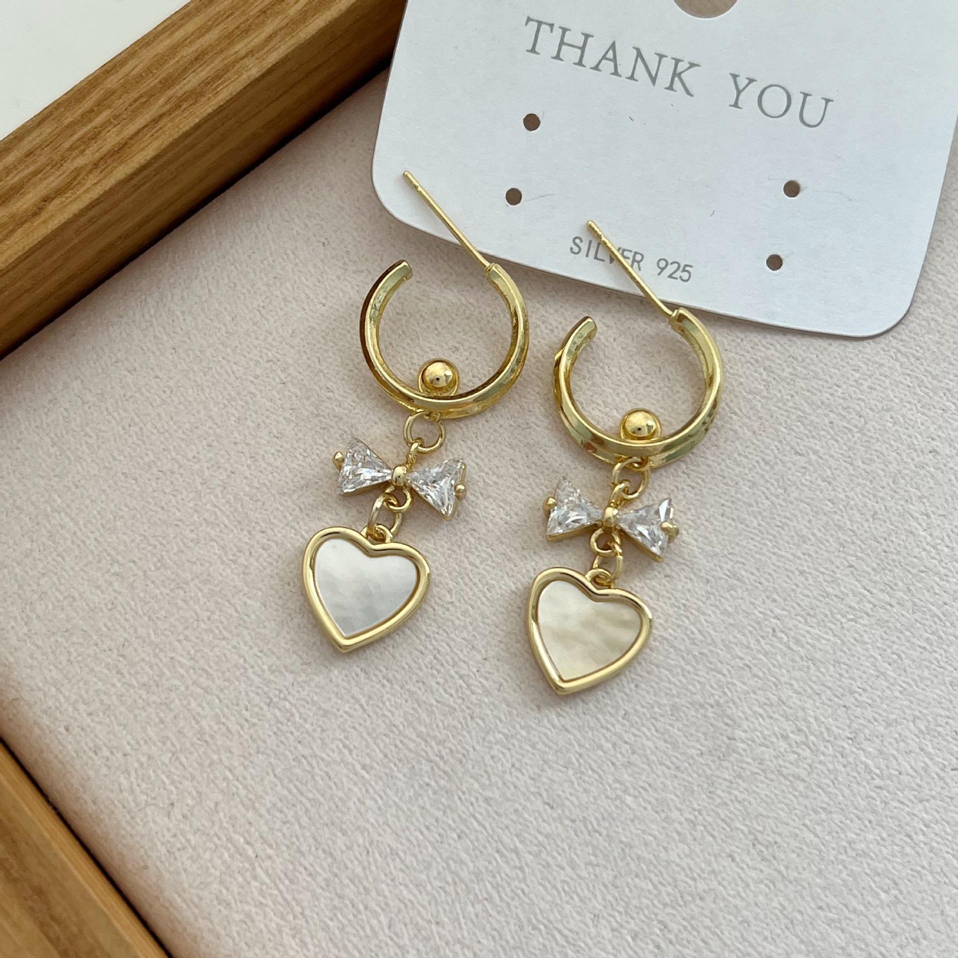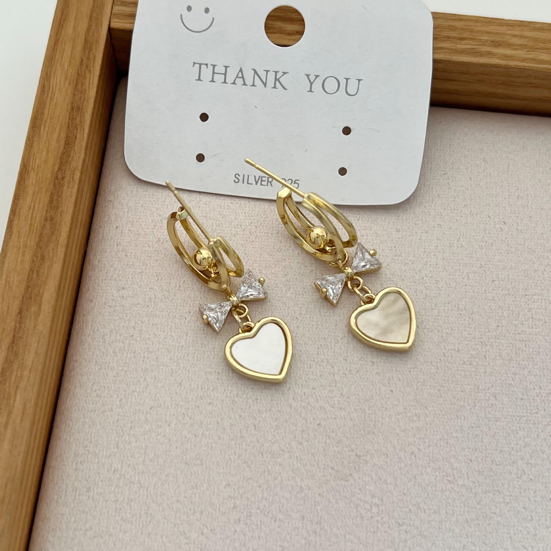 Pendientes sencillos, dulces y encantadores con lazo de diamantes de imitación de concha para mujer, ligeros, lujosos, con temperamento de nicho, ligeros, lujosos, con forma de corazón de melocotón, a la moda.