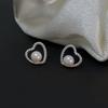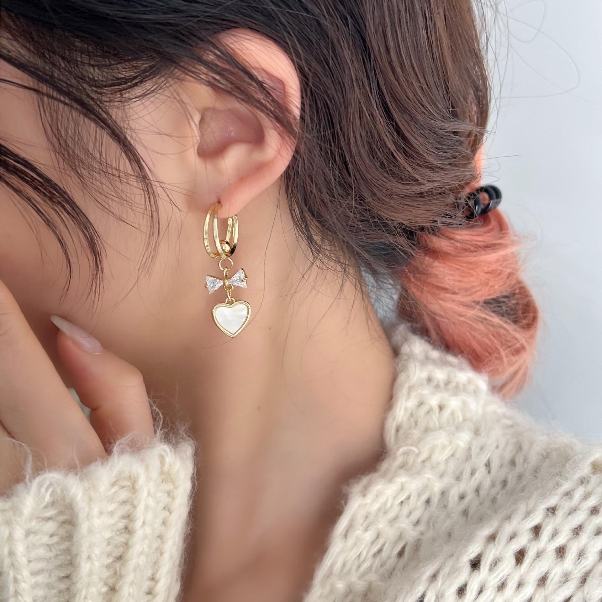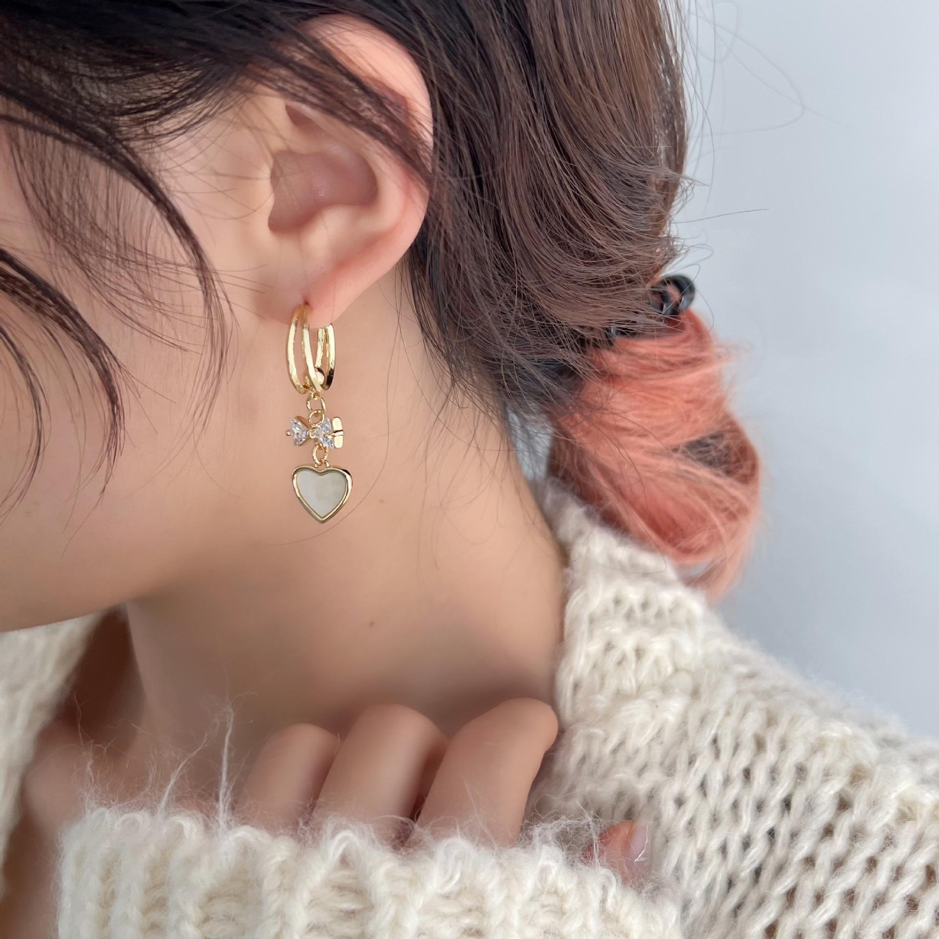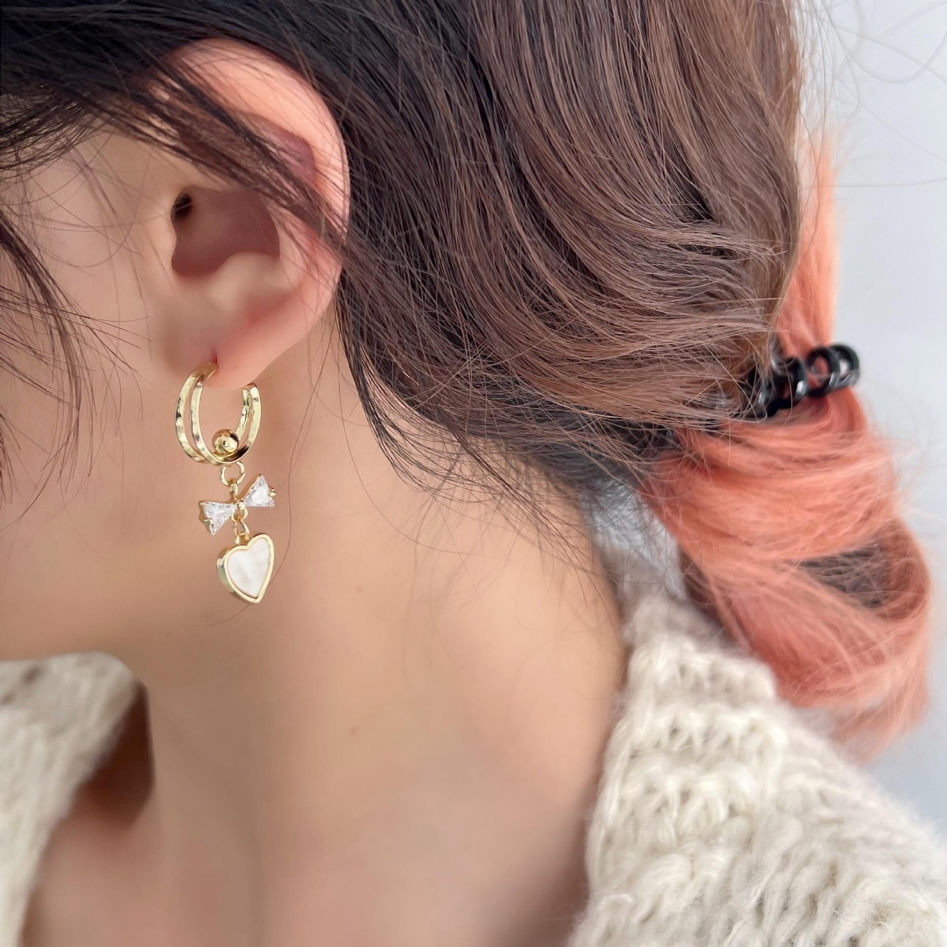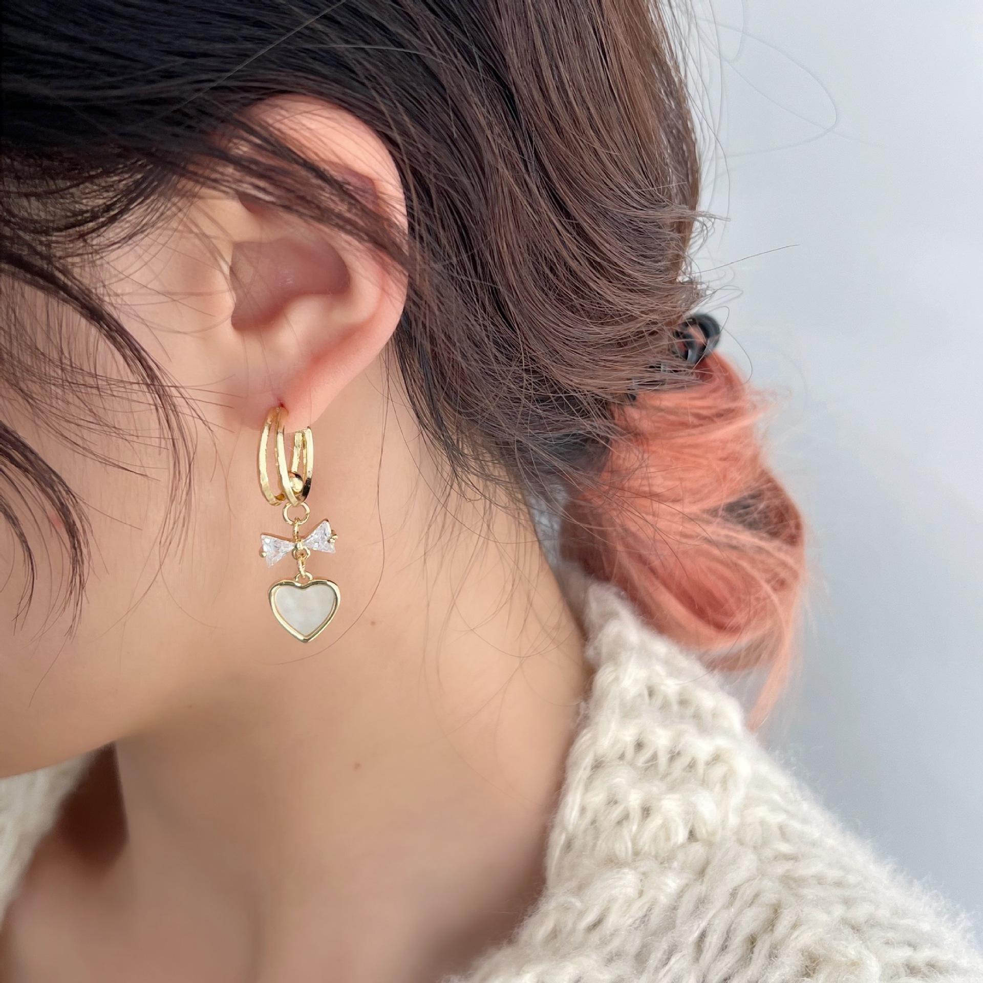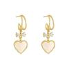 Pendientes sencillos, dulces y encantadores con lazo de diamantes de imitación de concha para mujer, ligeros, lujosos, con temperamento de nicho, ligeros, lujosos, con forma de corazón de melocotón, a la moda.