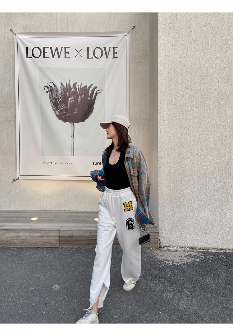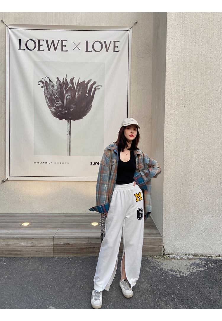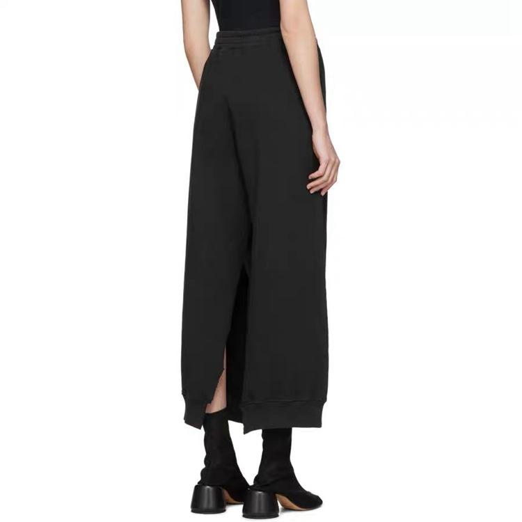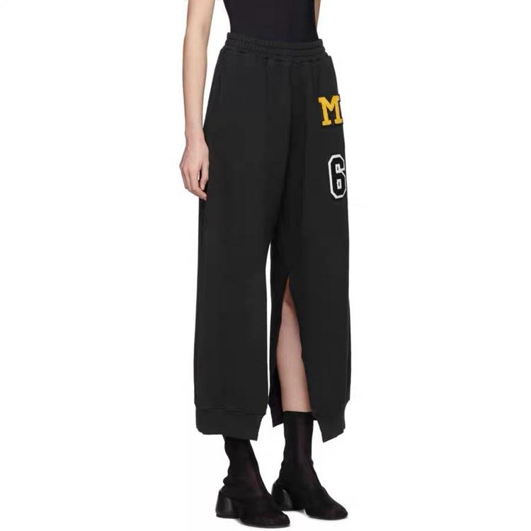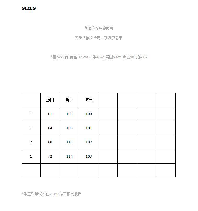 Las perneras están divididas, pero las costuras laterales están divididas verticalmente en la línea de la costura lateral. La posición también es relativamente alta.