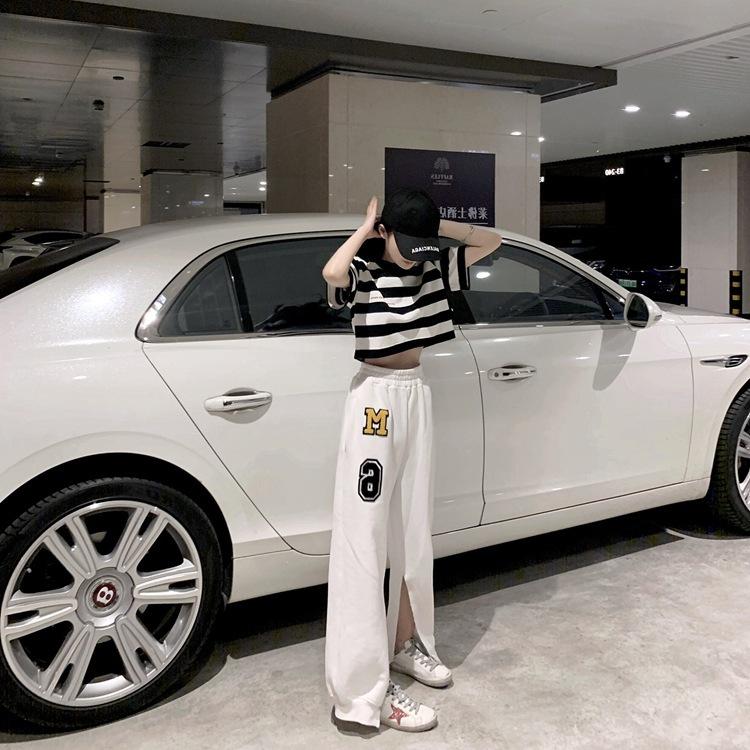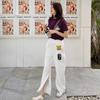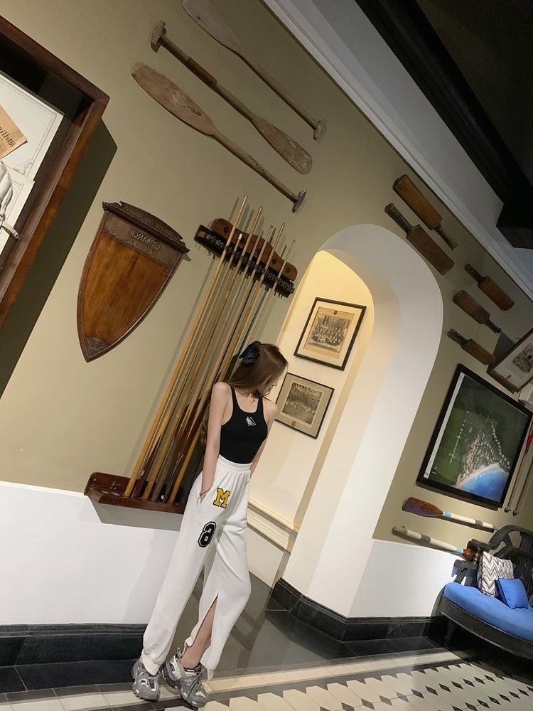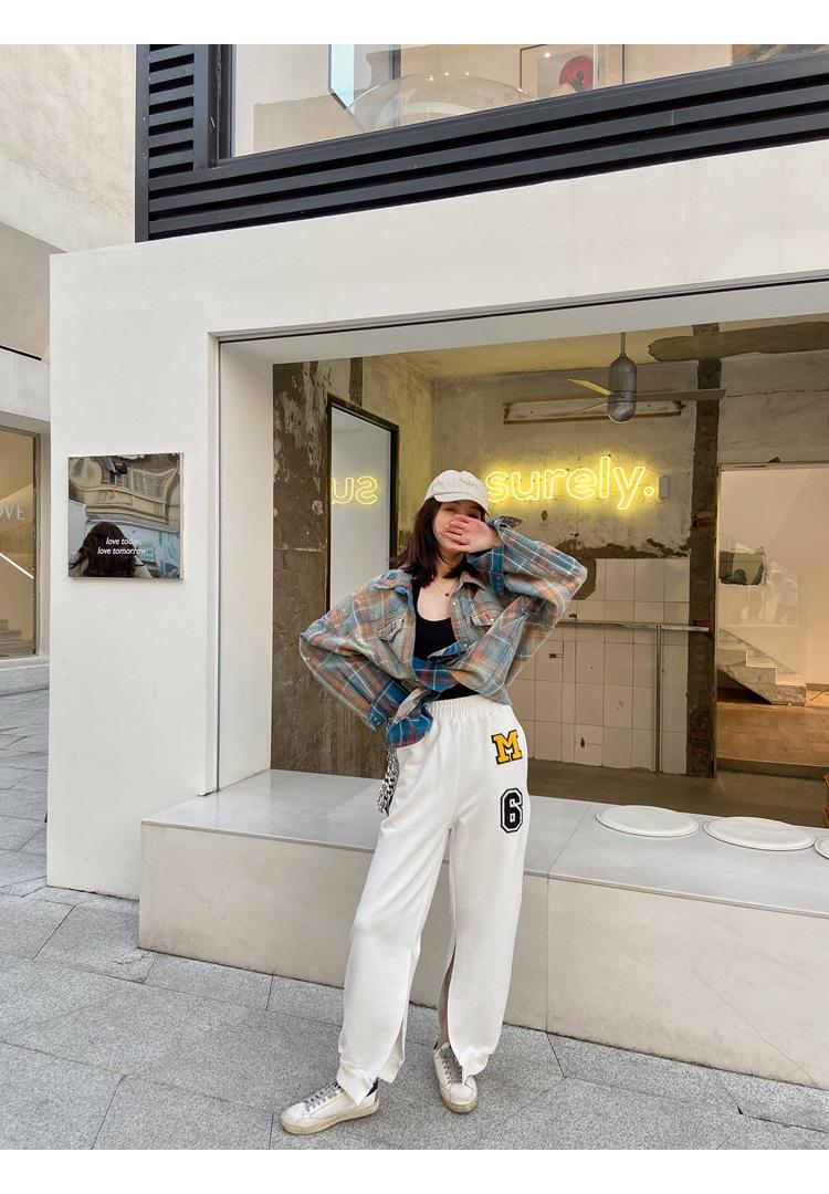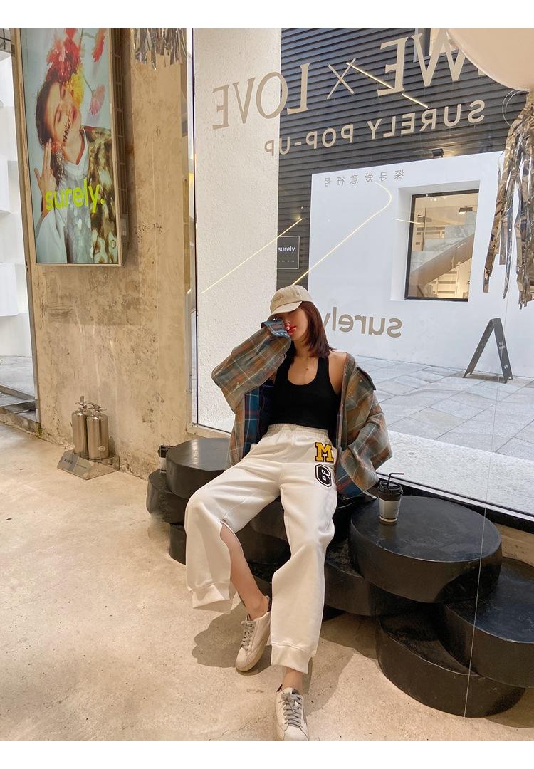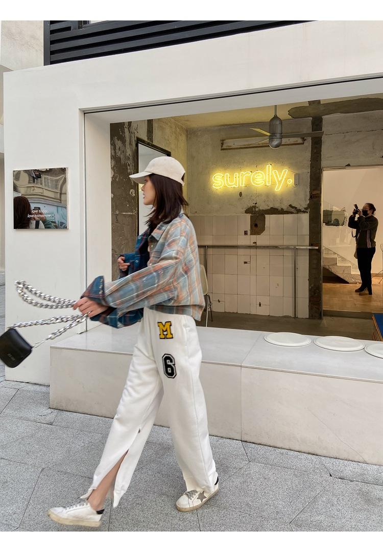 Las perneras están divididas, pero las costuras laterales están divididas verticalmente en la línea de la costura lateral. La posición también es relativamente alta.