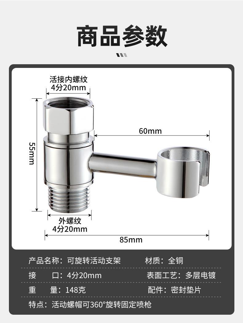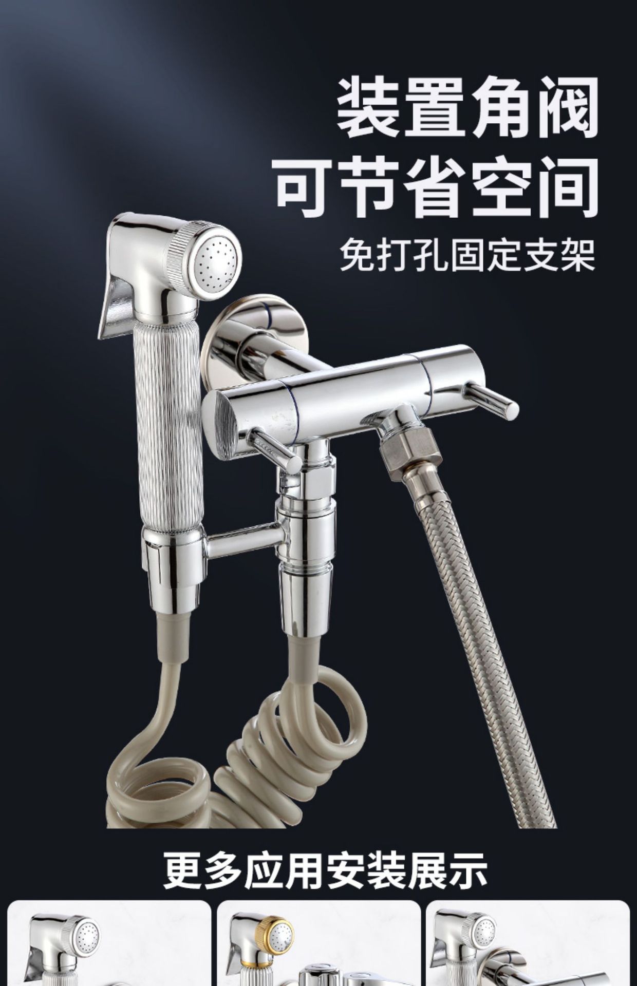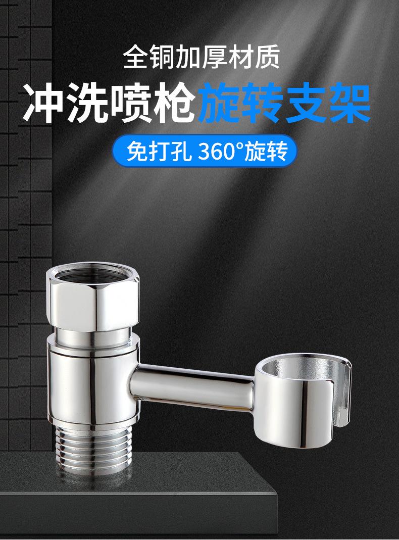 Arandela de secado sin orificios, soporte giratorio, base de cobre, válvula triangular para inodoro, pistola rociadora de descarga, colgador de ducha