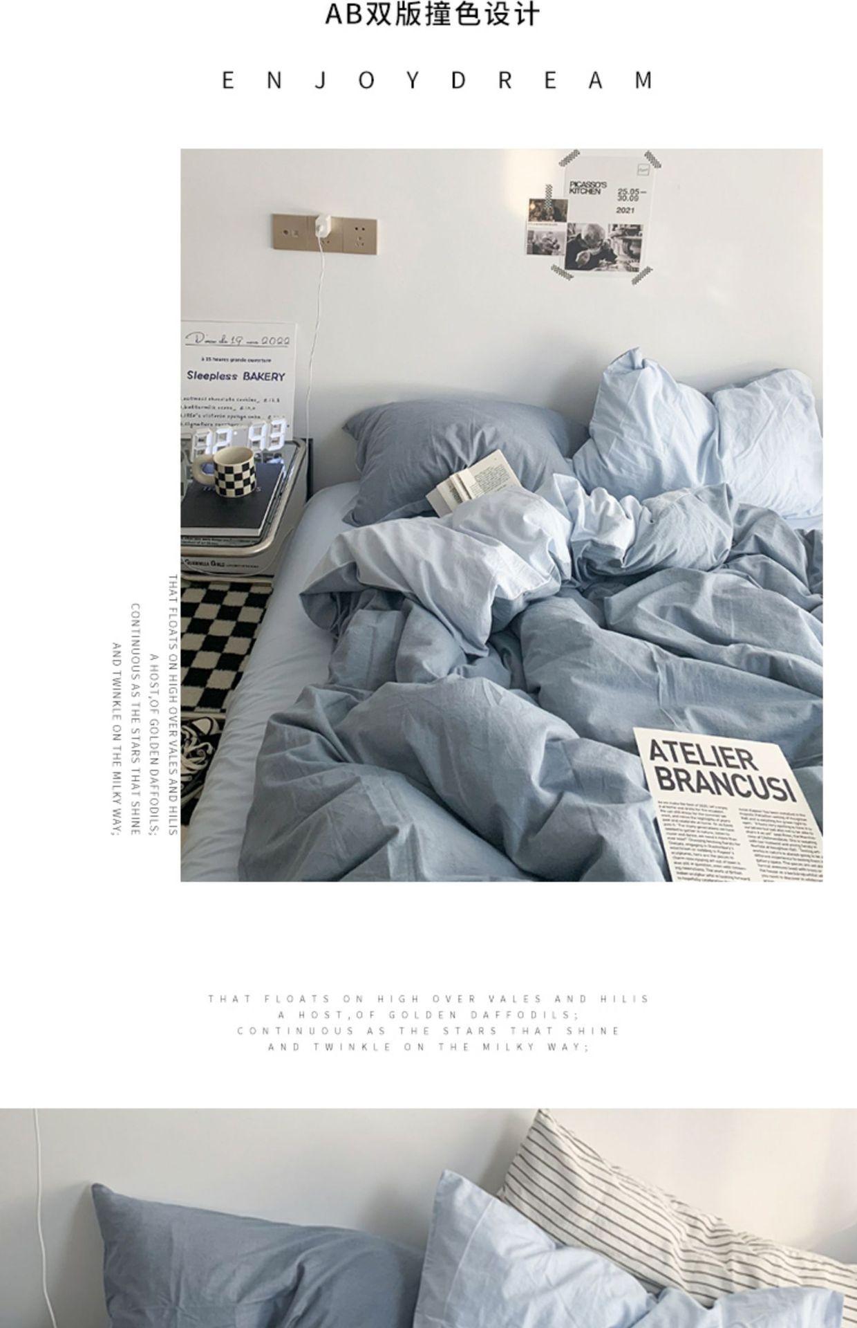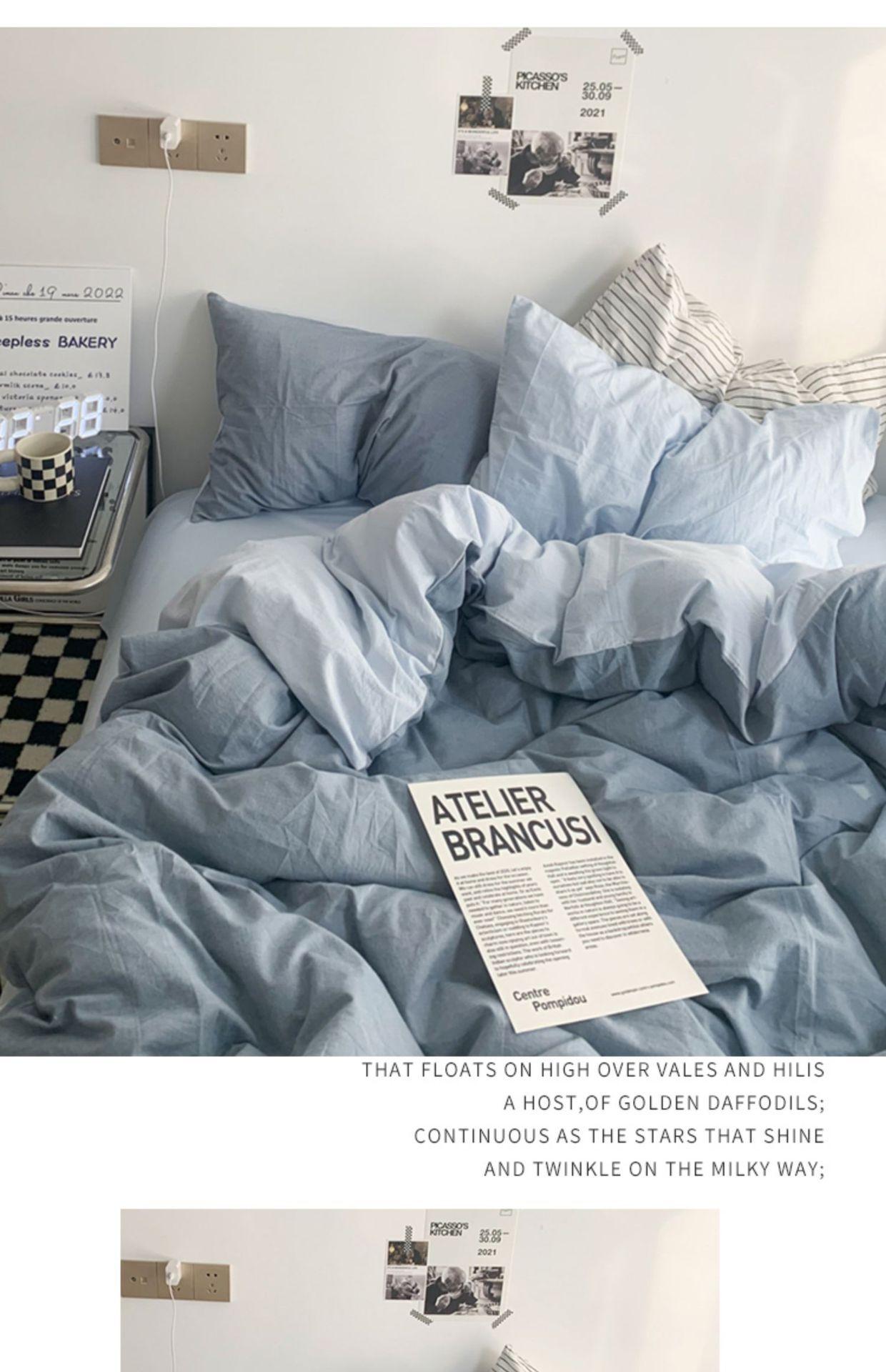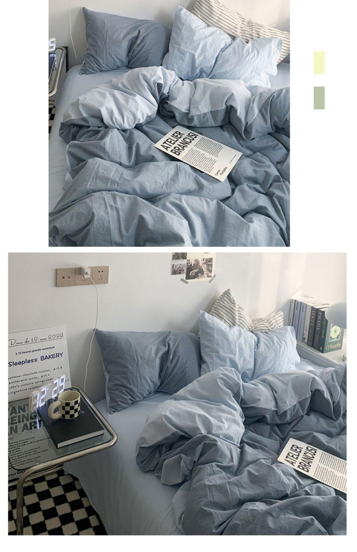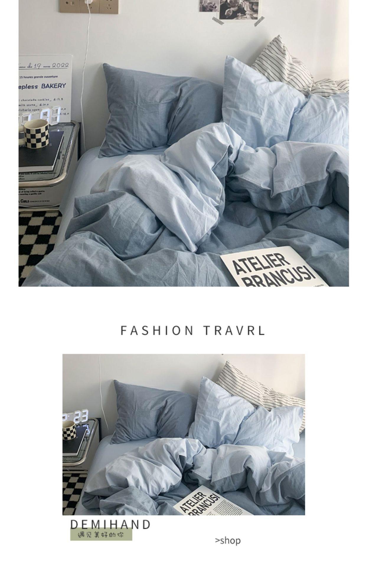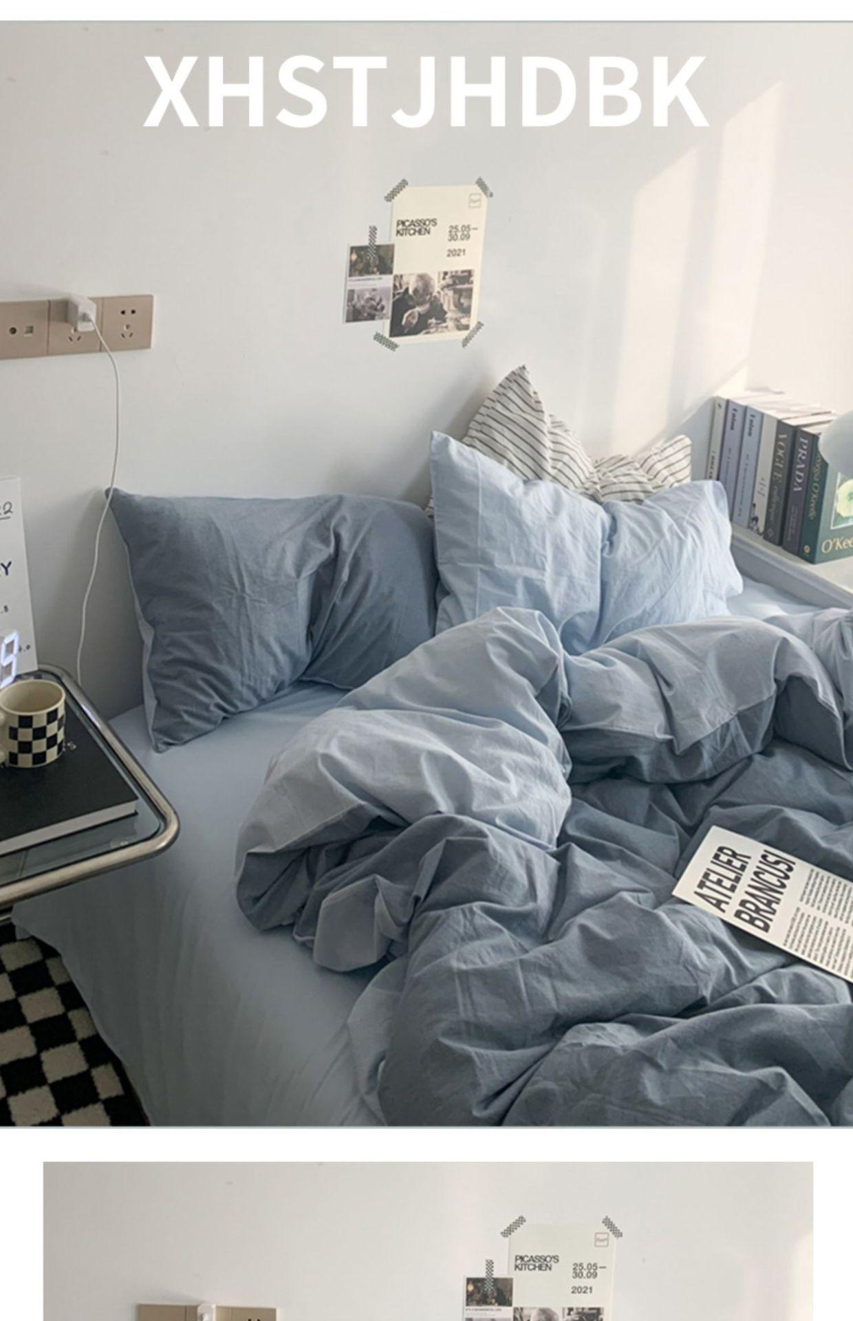 Juego de cama de cuatro piezas Ins Bedding, sábana de algodón lavado, funda de edredón, funda de cama para dormitorio de estudiantes, juego de tres piezas de 4 piezas, venta al por mayor