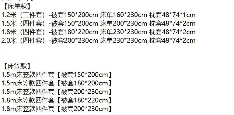 1.2 meters (three-piece set-quilt cover 150*200cm sheet 160*230cm pillowcase 48*74*1cm)