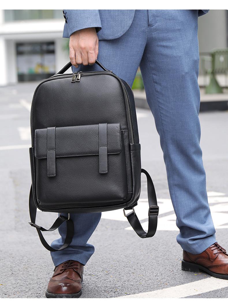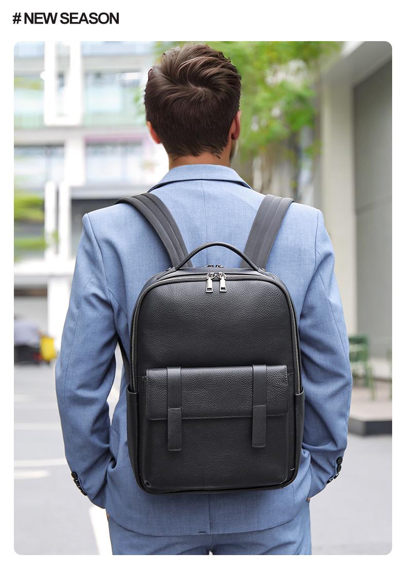 Mochila de cuero de caballo loco para hombre, de piel de vaca auténtica, sencilla, de moda, para viajes, de negocios, al por mayor