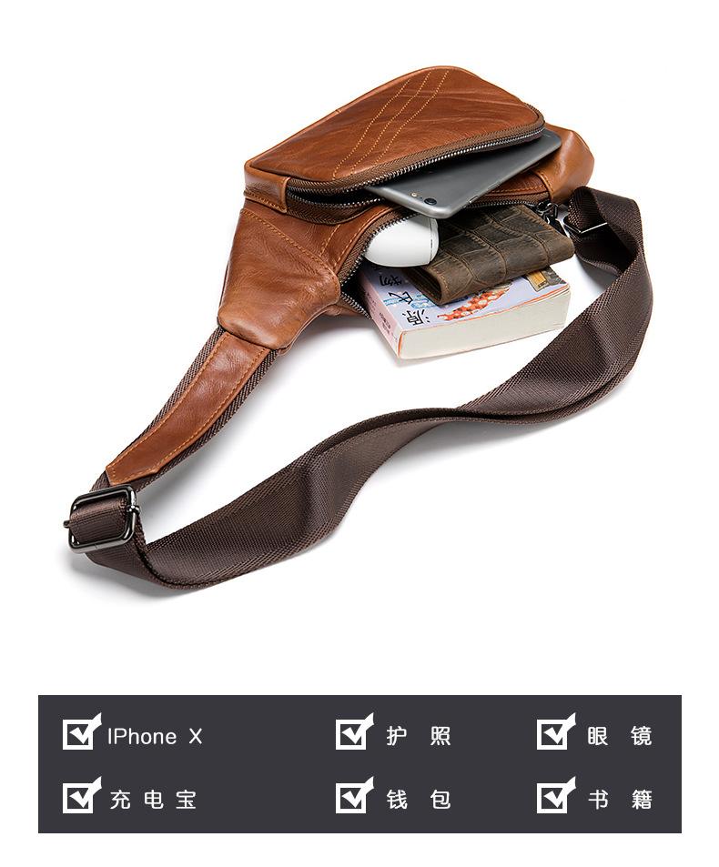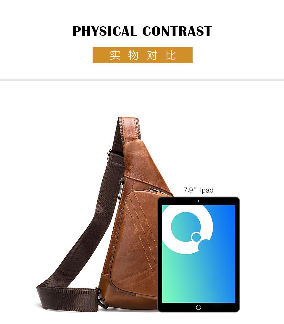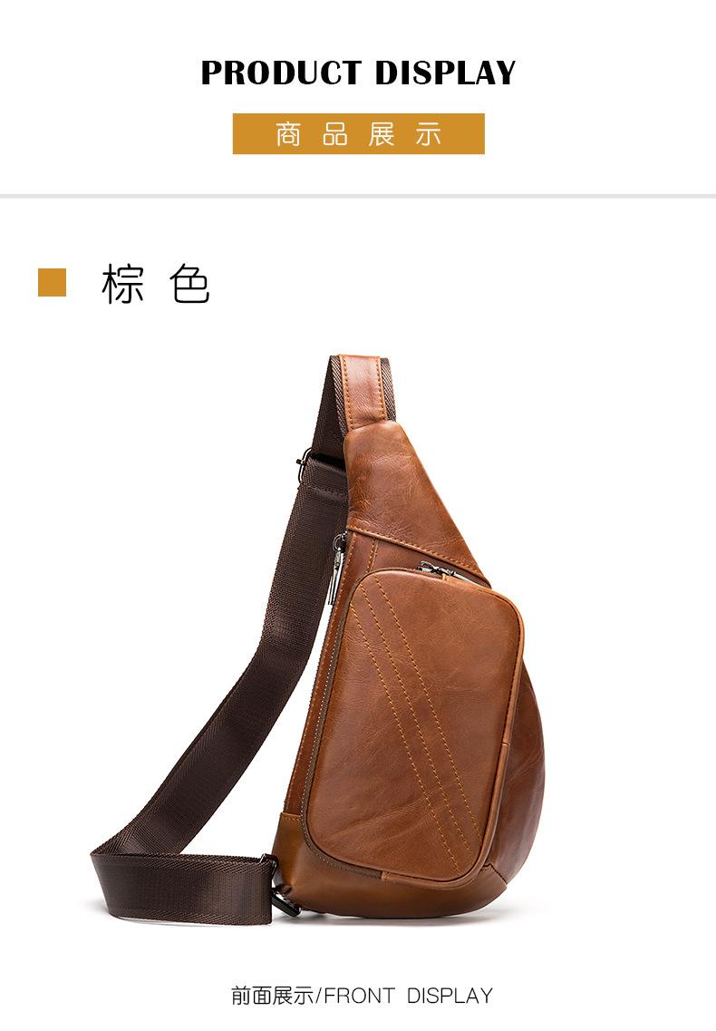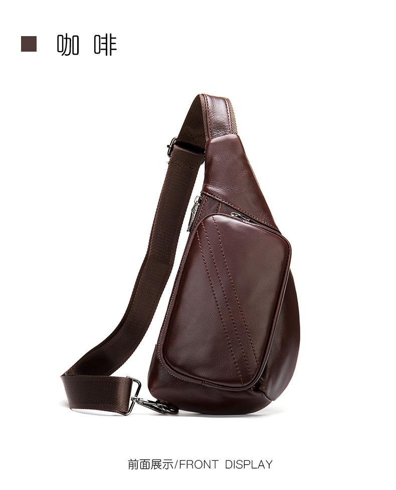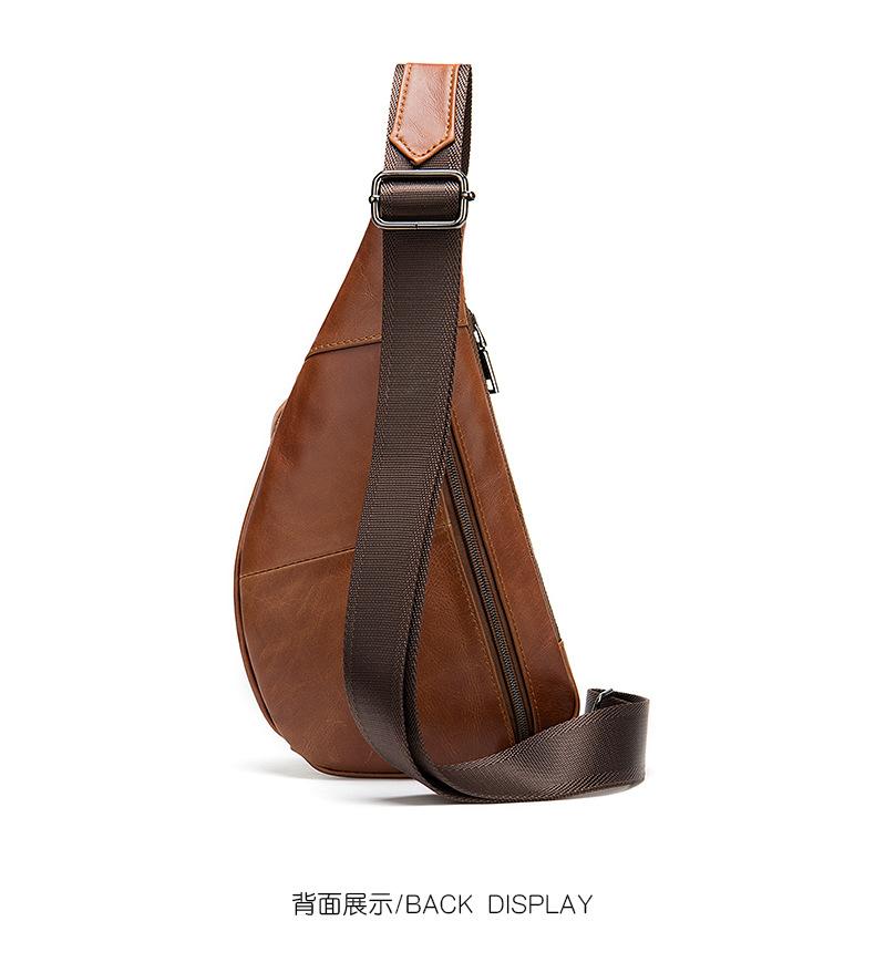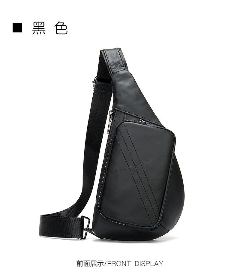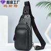 Bolso de pecho de cuero genuino personalizado para hombre, bolso triangular de cuero suave creativo japonés y coreano, bolso de hombro deportivo de ocio, venta al por mayor 696