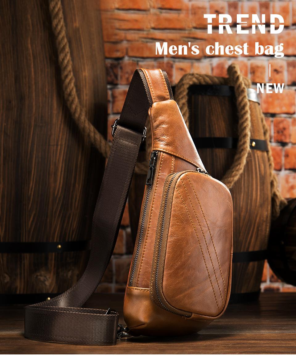Bolso de pecho para hombre, de piel auténtica, estilo coreano, informal, de piel de vaca, tipo mensajero, mochila pequeña, a la moda, novedad de 2022