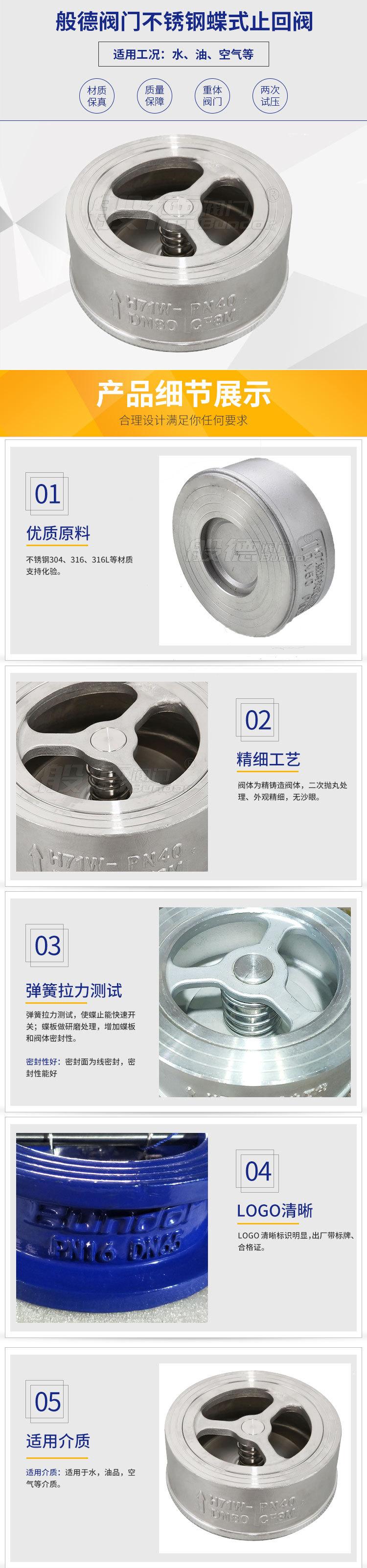 Válvula de retención de mariposa de suministro directo de fábrica, válvula antirretorno estándar nacional, válvula unidireccional, válvula de retención tipo wafer DN80