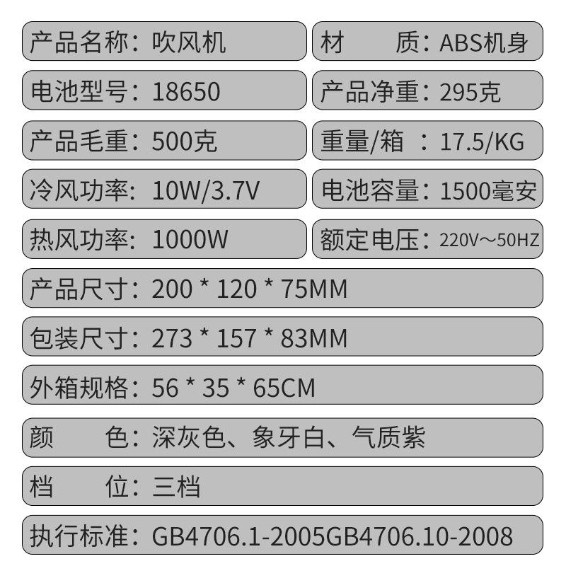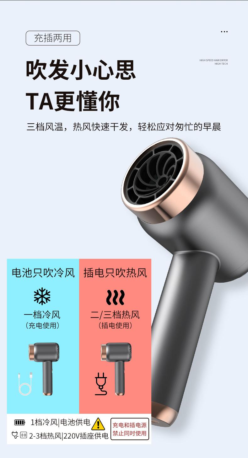 Secadora de Pelo Enchufable Recargable de Doble Uso Secadora de Pelo Cuidado del Cabello para el Hogar Dormitorio Secador de Pelo Modelo de Carga USB