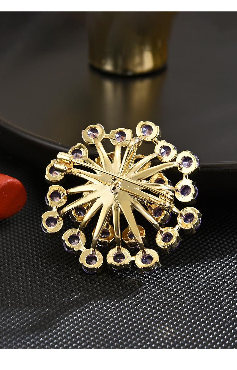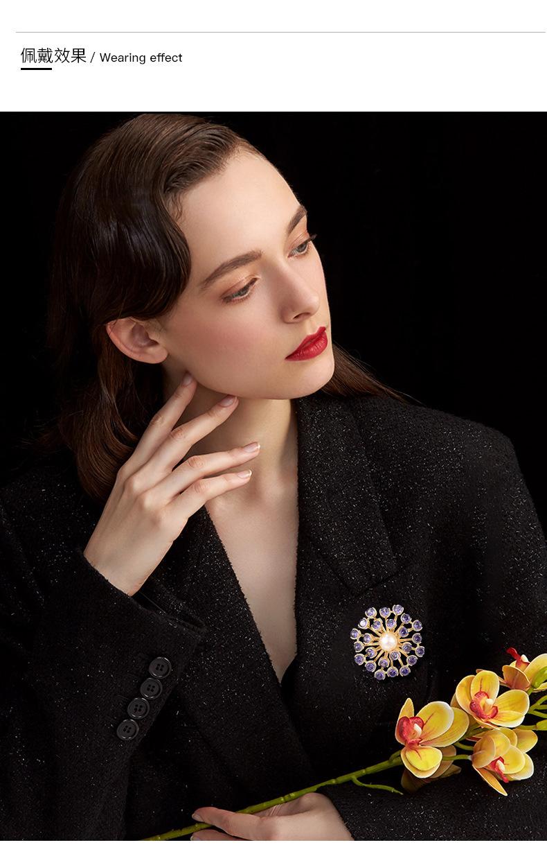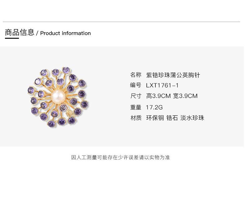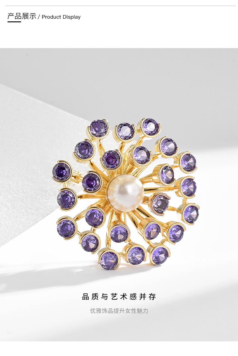 Broche europeo y americano de circonio púrpura diente de león perla abrigo pin de solapa personalizado accesorios femeninos exquisitos lujo pedrería hebilla de pin femenina