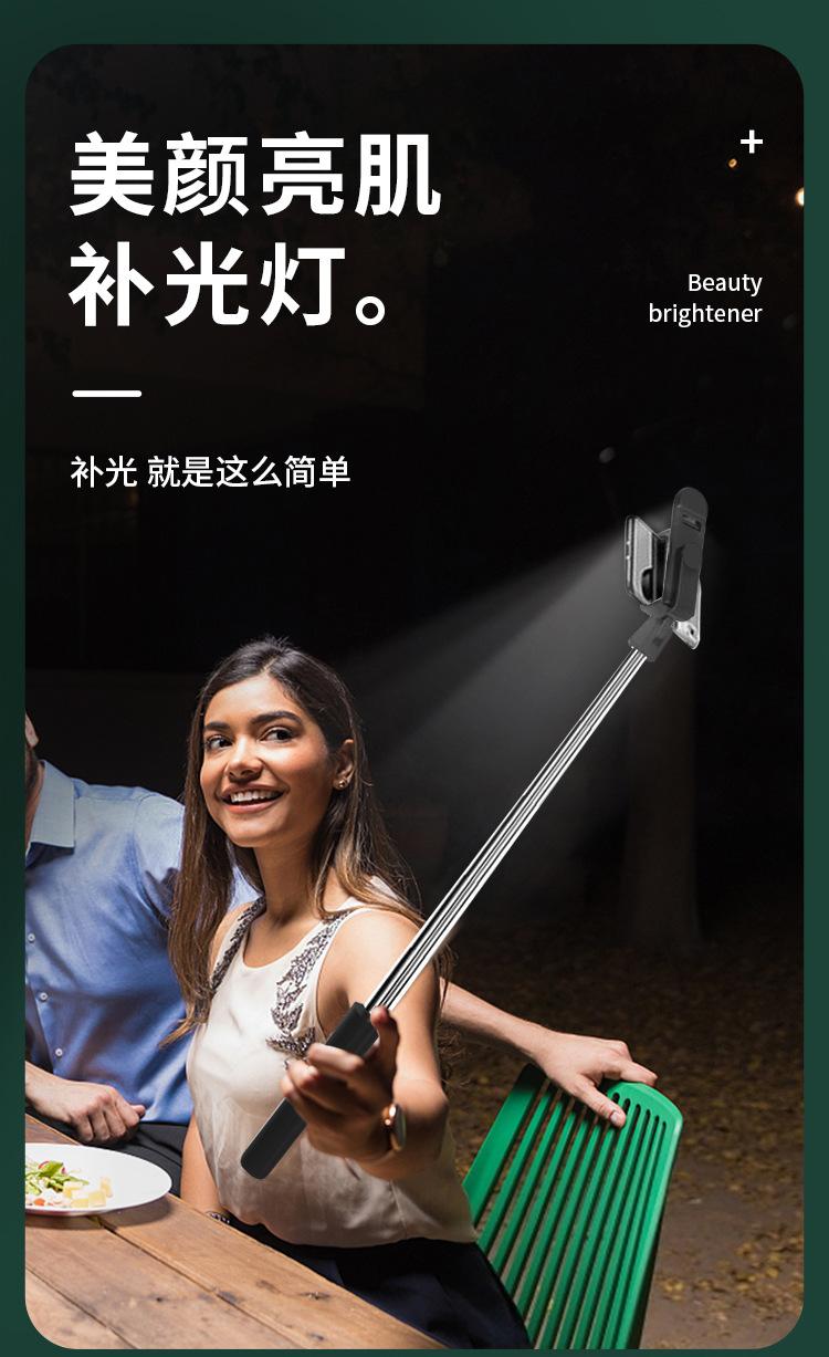 Fabricante mayorista de palo selfie con Bluetooth, palo selfie extendido de 1 metro con luz de relleno, fotografía horizontal y vertical, artefacto fotográfico universal