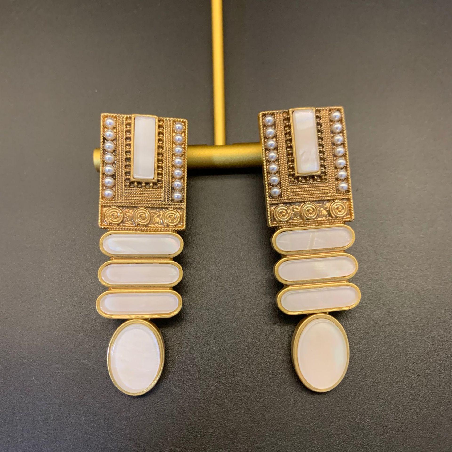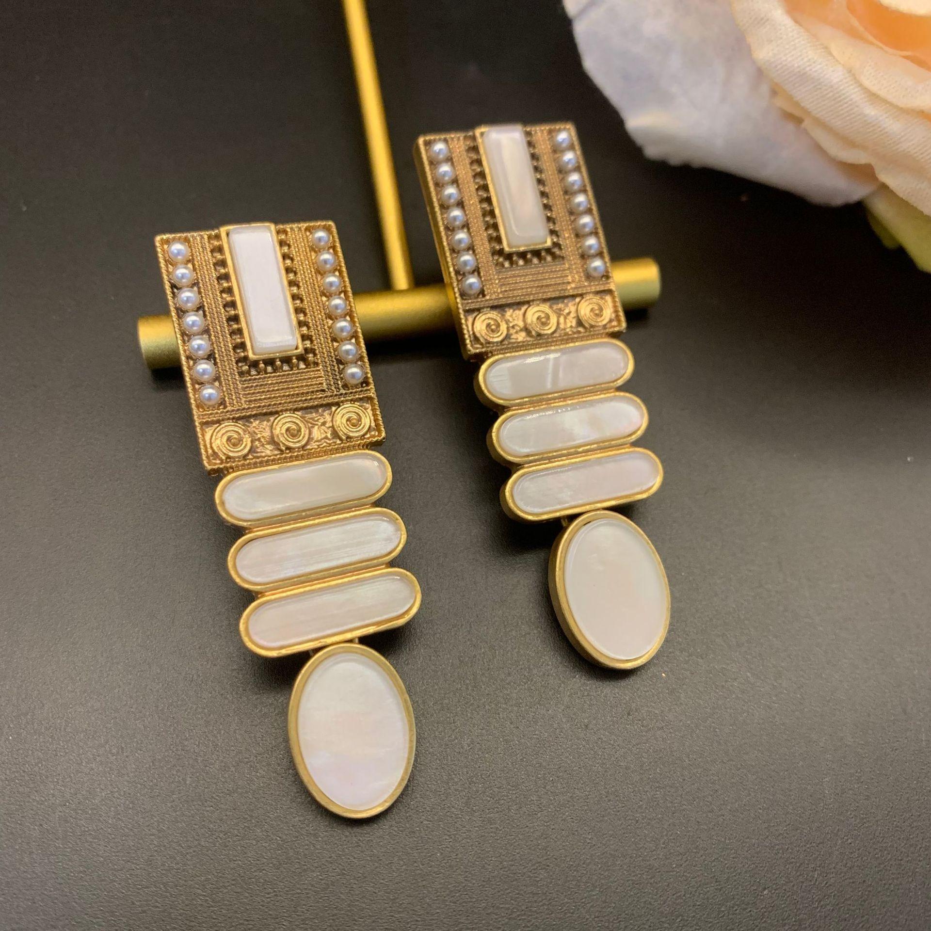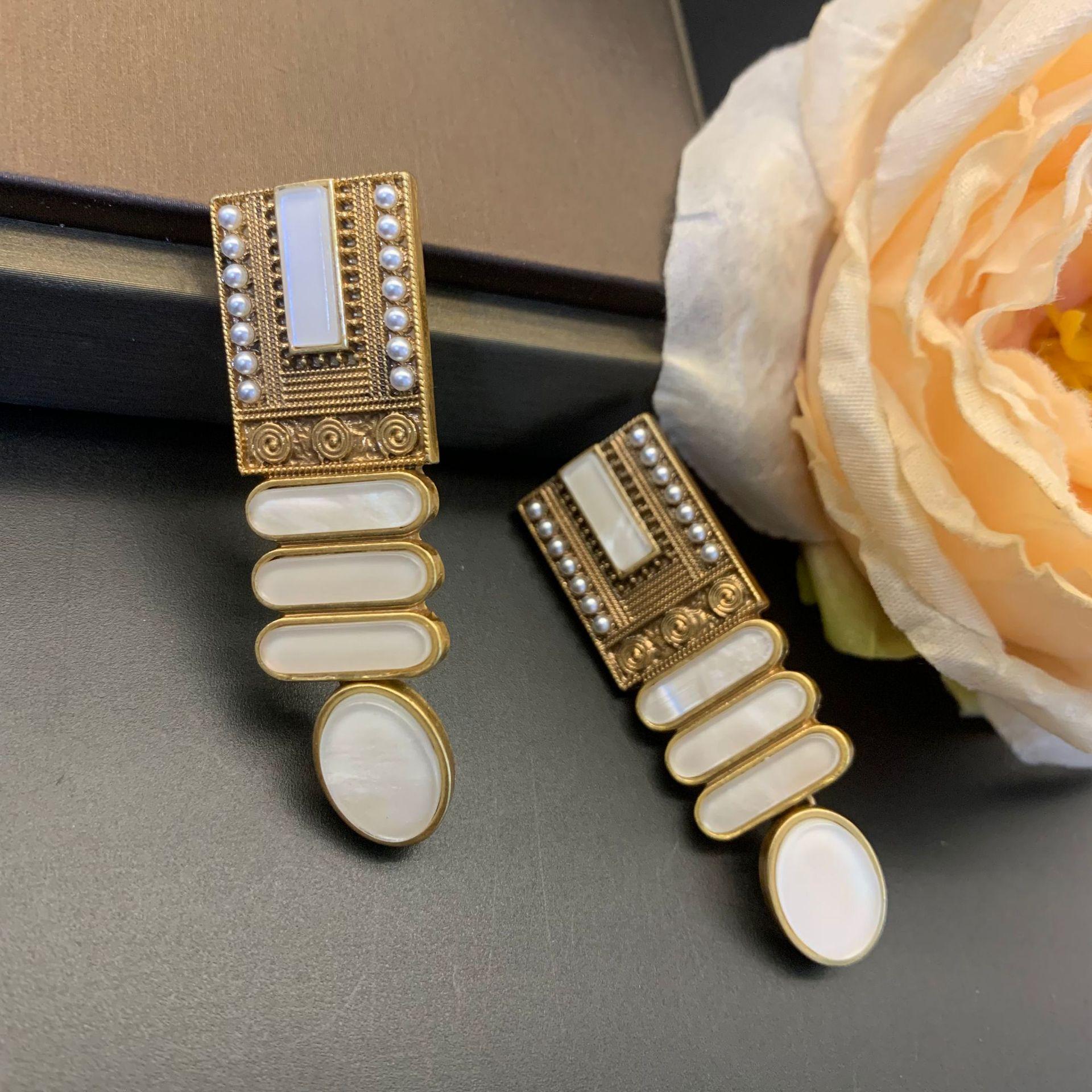 Aretes Elegantes de Diseño Retro Exagerado Moda Rectangular de Alta Gama Lujosa Ligera con Aretes de Perla de Imitación Aretes