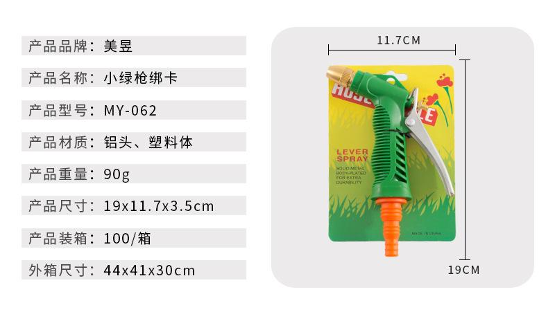 Pistola de agua para lavado de autos con cabezal de aluminio y plástico, pequeña pistola verde, pistola de agua de riego doméstica, herramientas para lavado de autos
