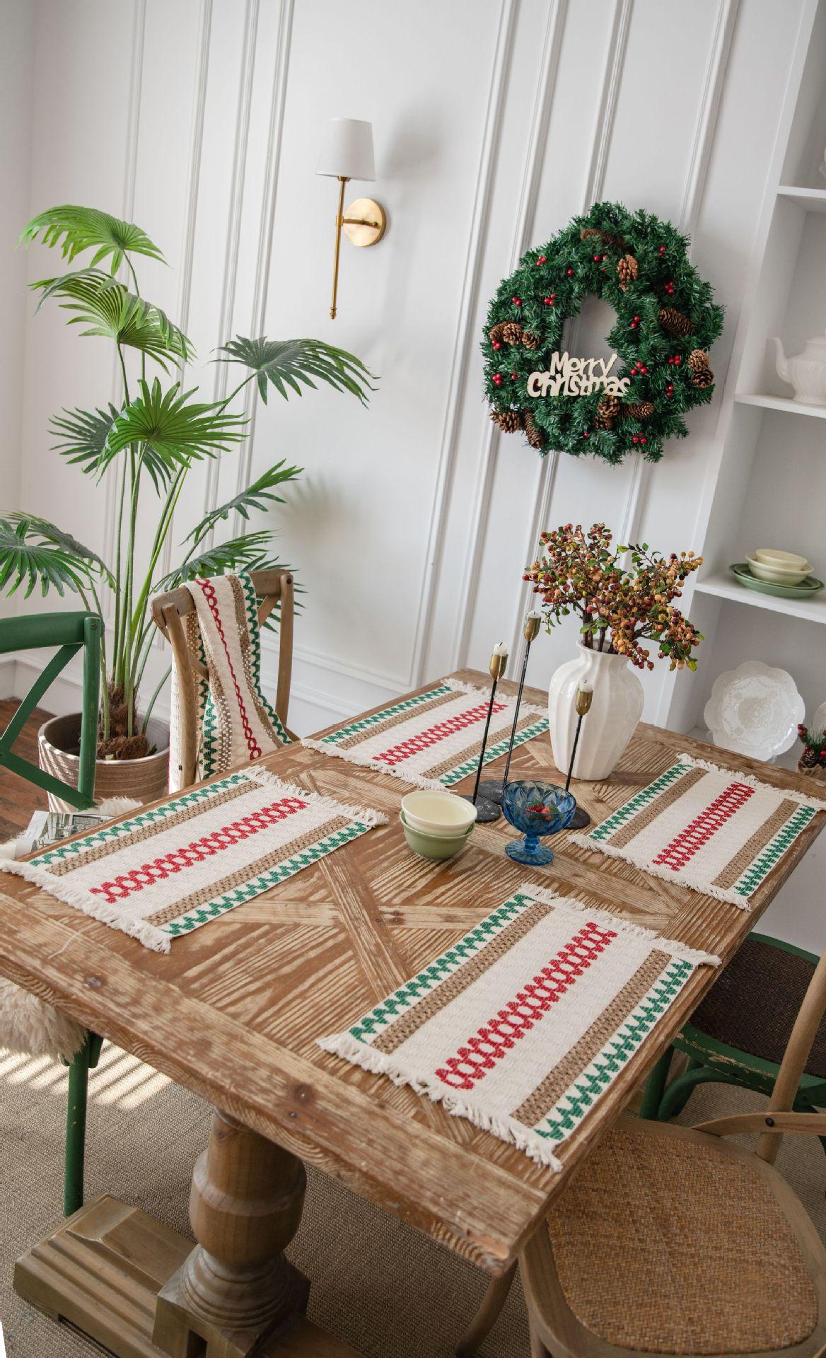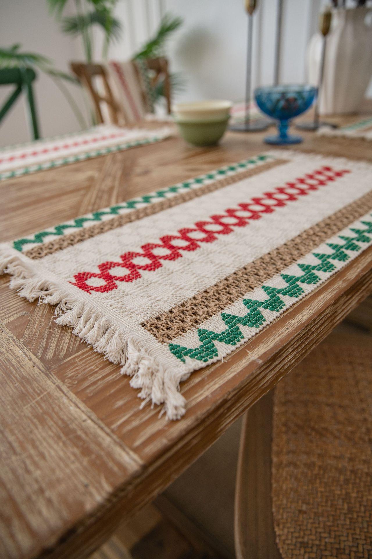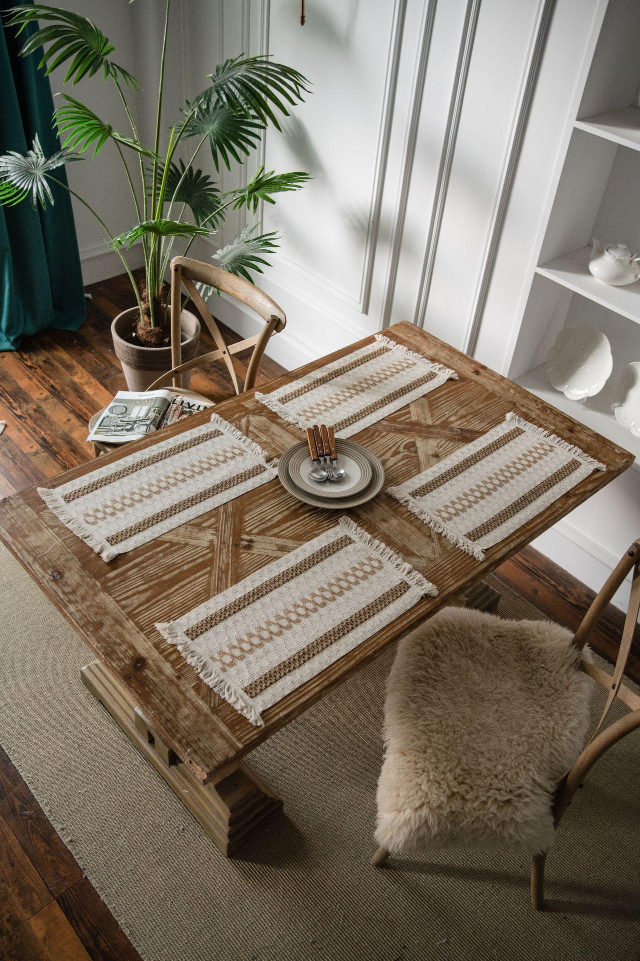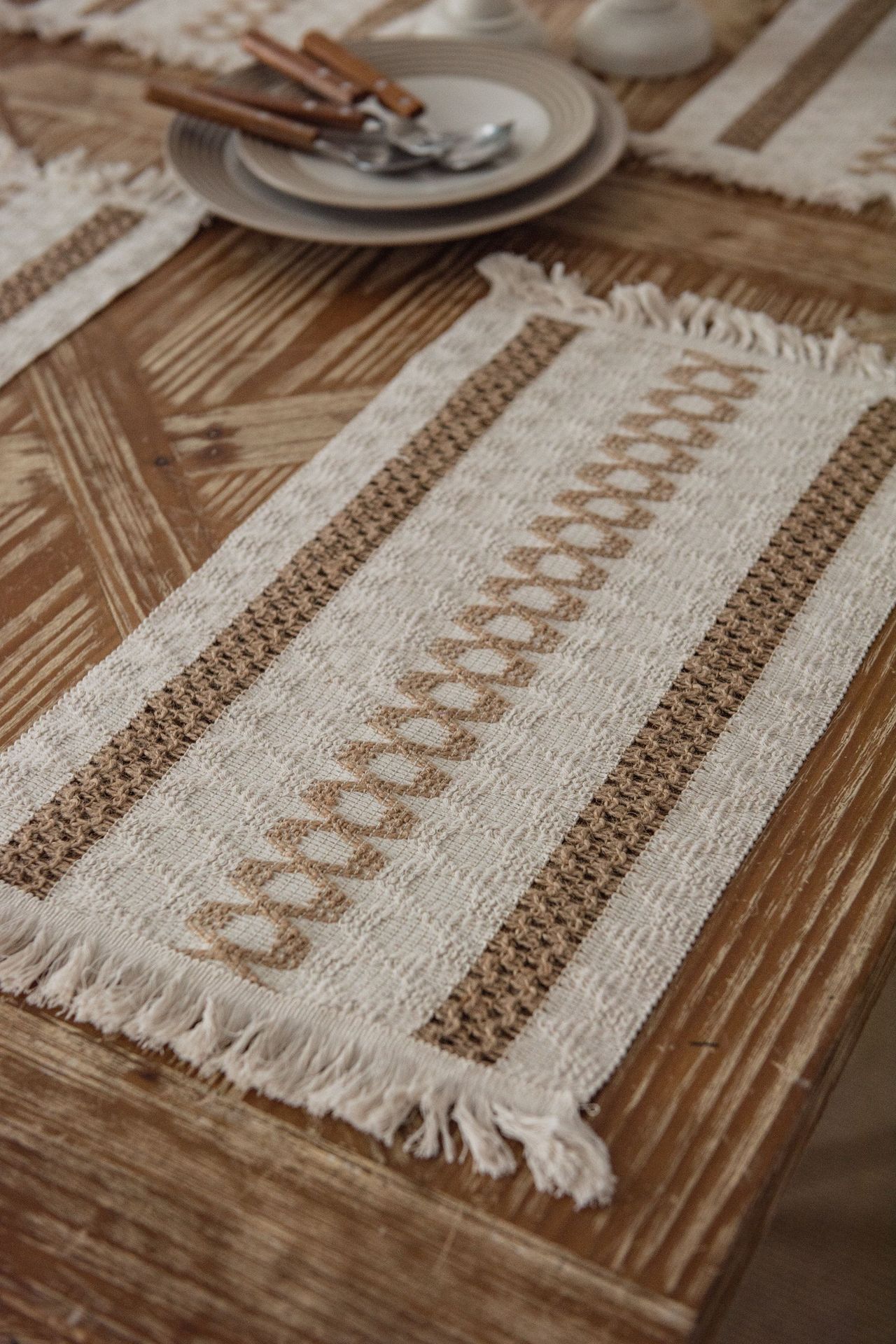 Imaki rima mantel individual de cuerda de cáñamo mantel individual festivo tejido combinación de colores flecos a rayas tapete para tazón suministro directo de fábrica