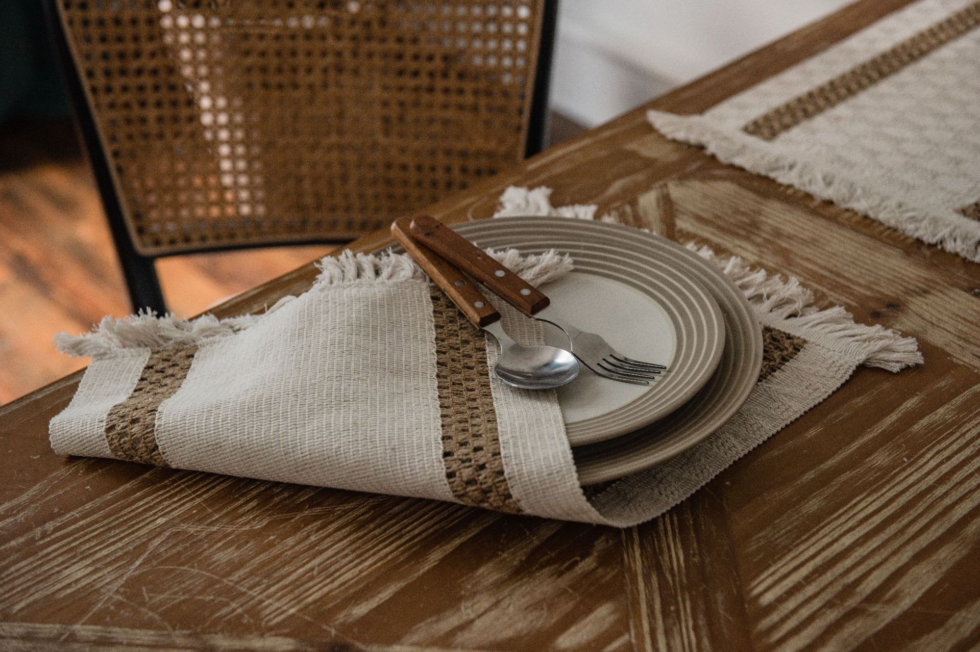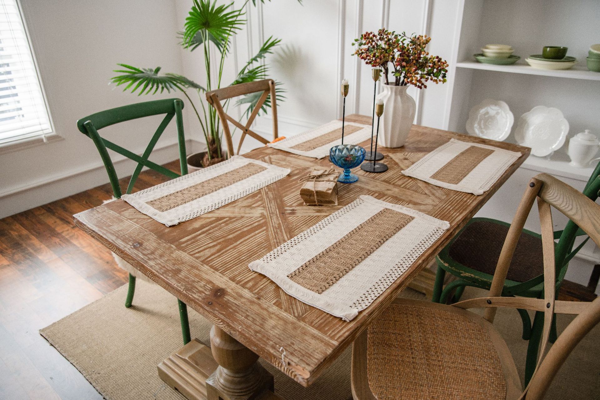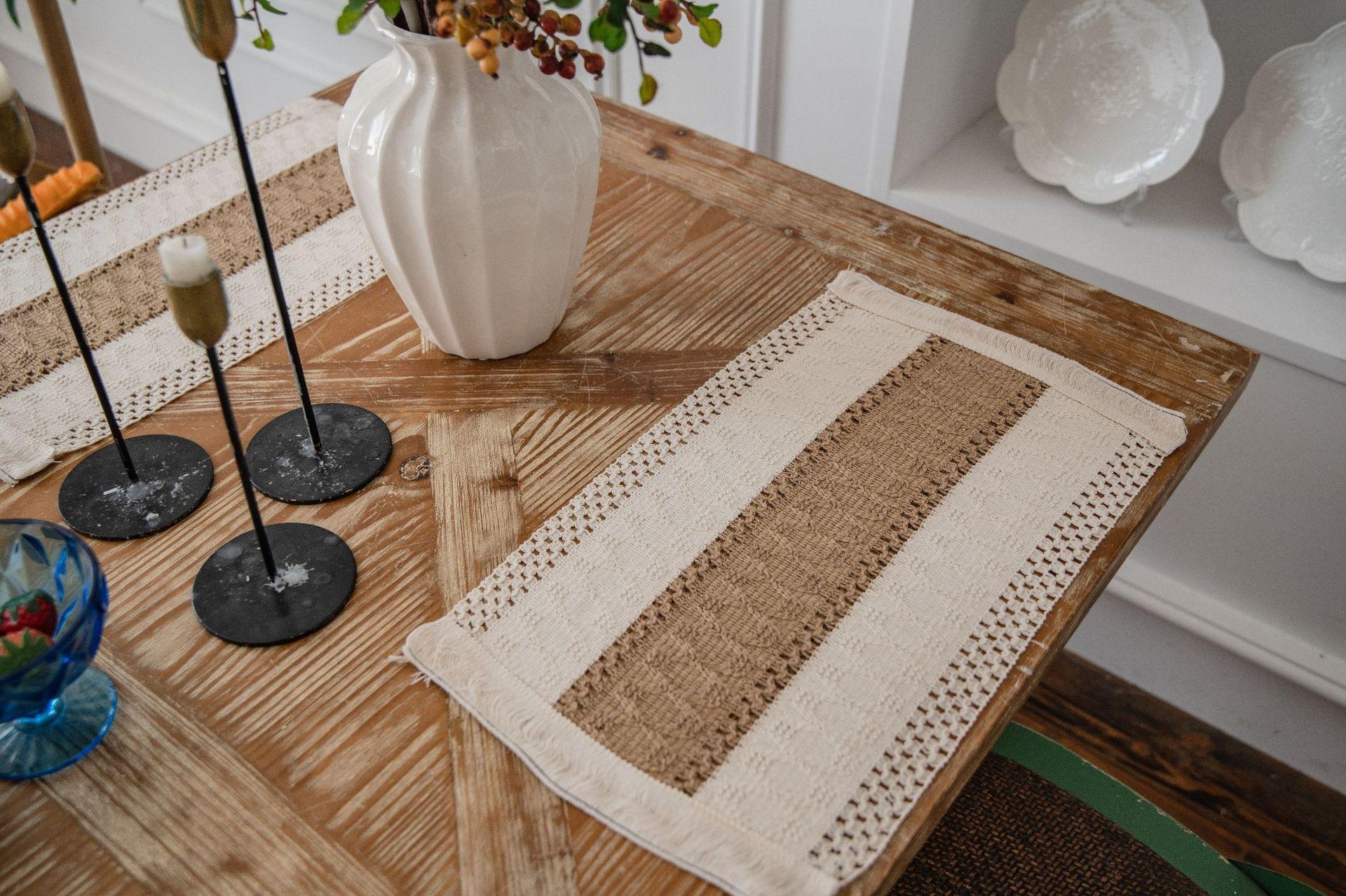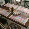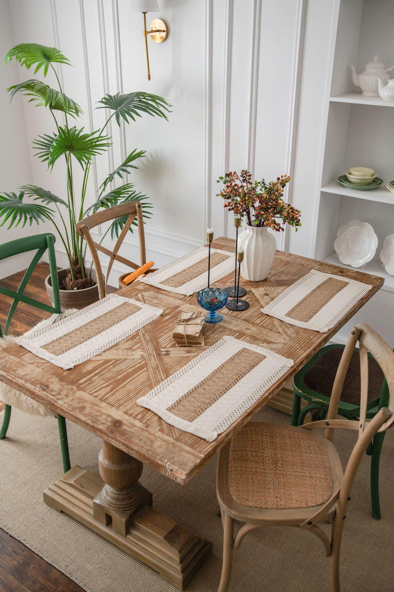 Imaki rima mantel individual de cuerda de cáñamo mantel individual festivo tejido combinación de colores flecos a rayas tapete para tazón suministro directo de fábrica