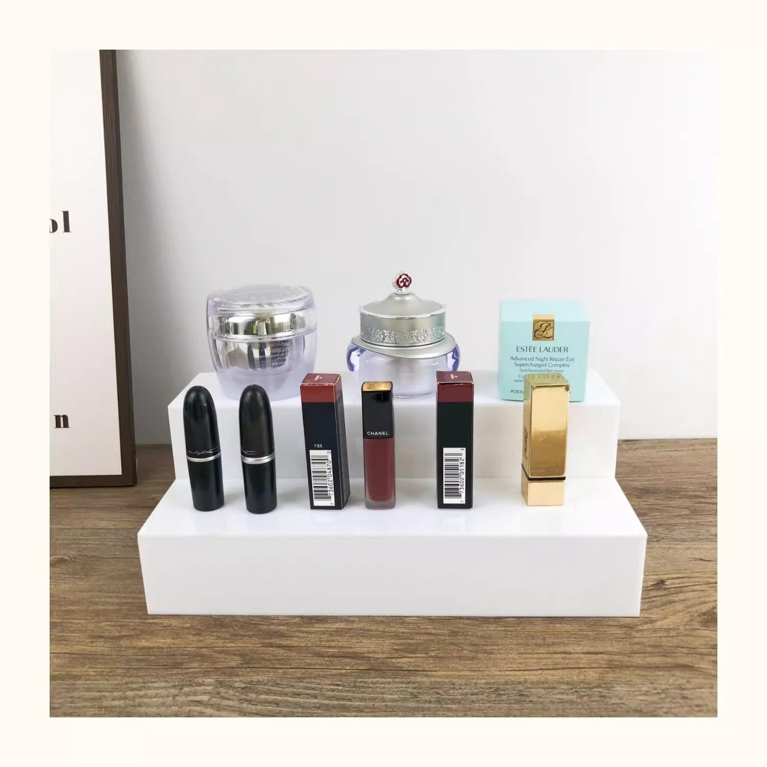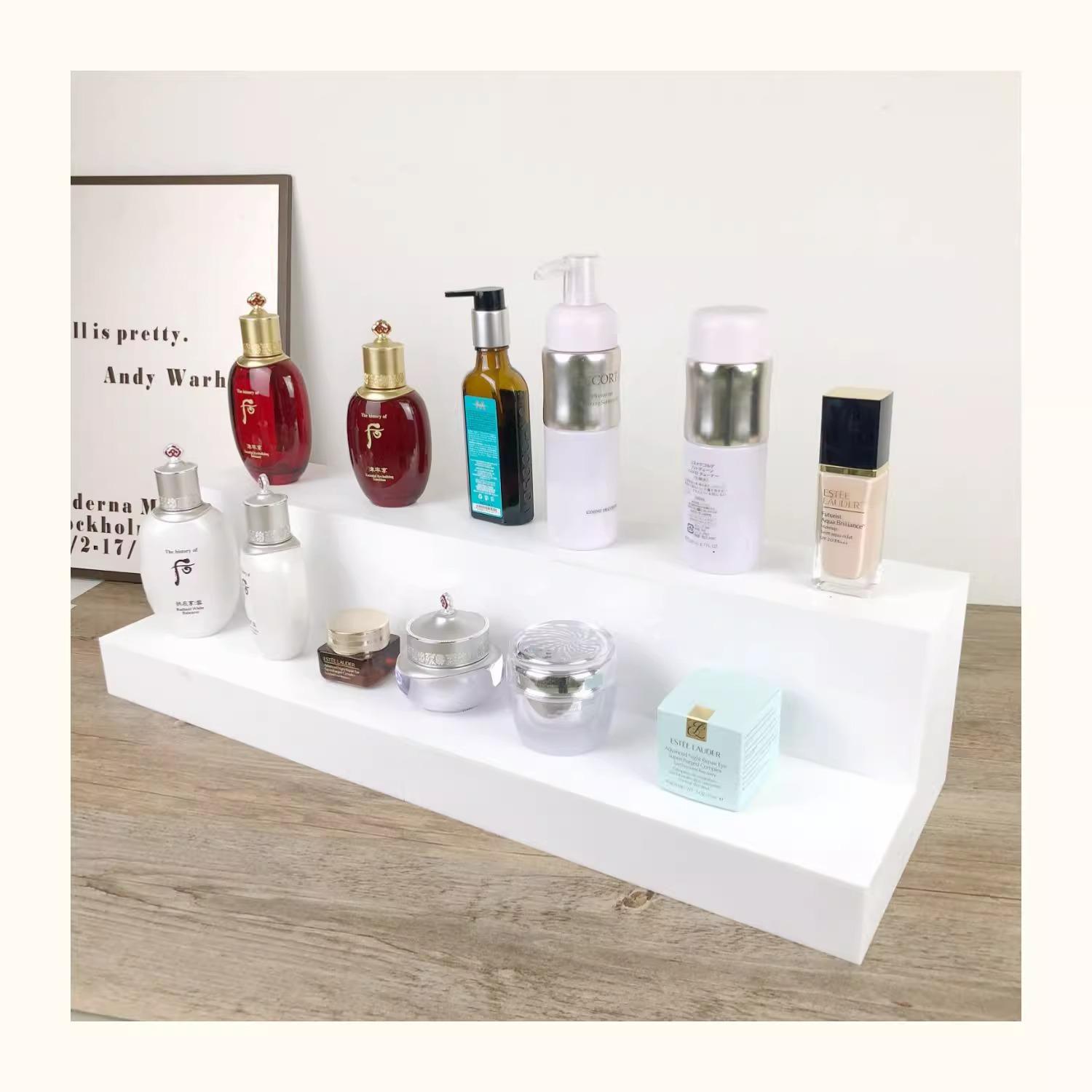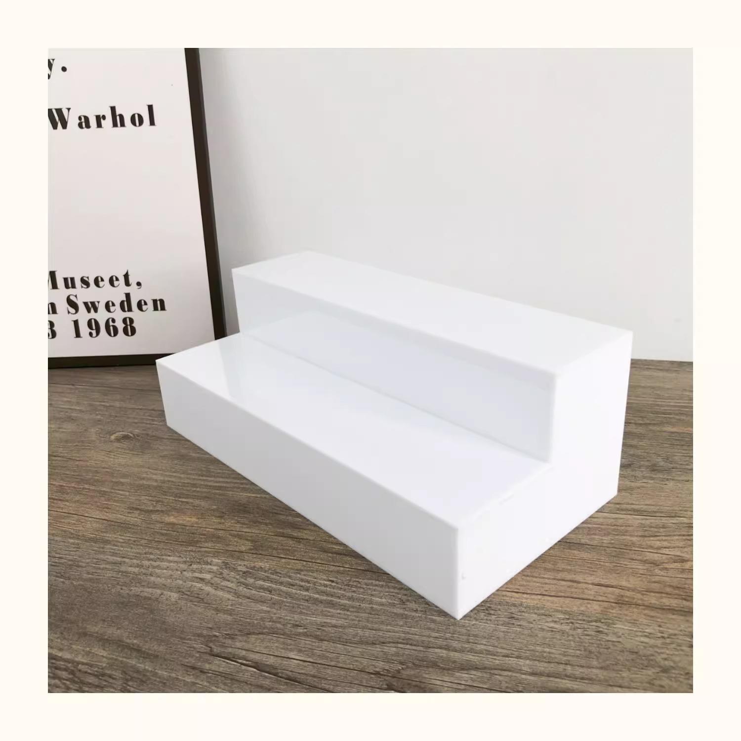 Estante de Almacenamiento de Cosméticos Acrílico Multicapa Hecho a Mano Blanco Estante de Exhibición de Escalera Soporte Exhibidor de Perfume Caja Ciega Exquisito