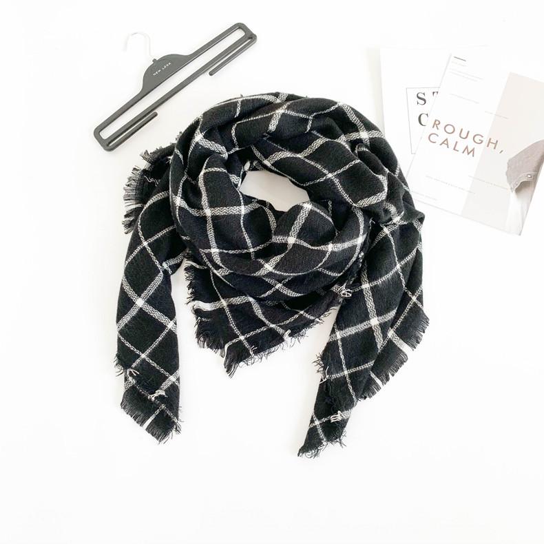 Amazon estilo caliente suministro directo de fábrica otoño e invierno nuevo bufanda cuadrada de cuadros de pluma de hilo circular cálida gruesa mujeres