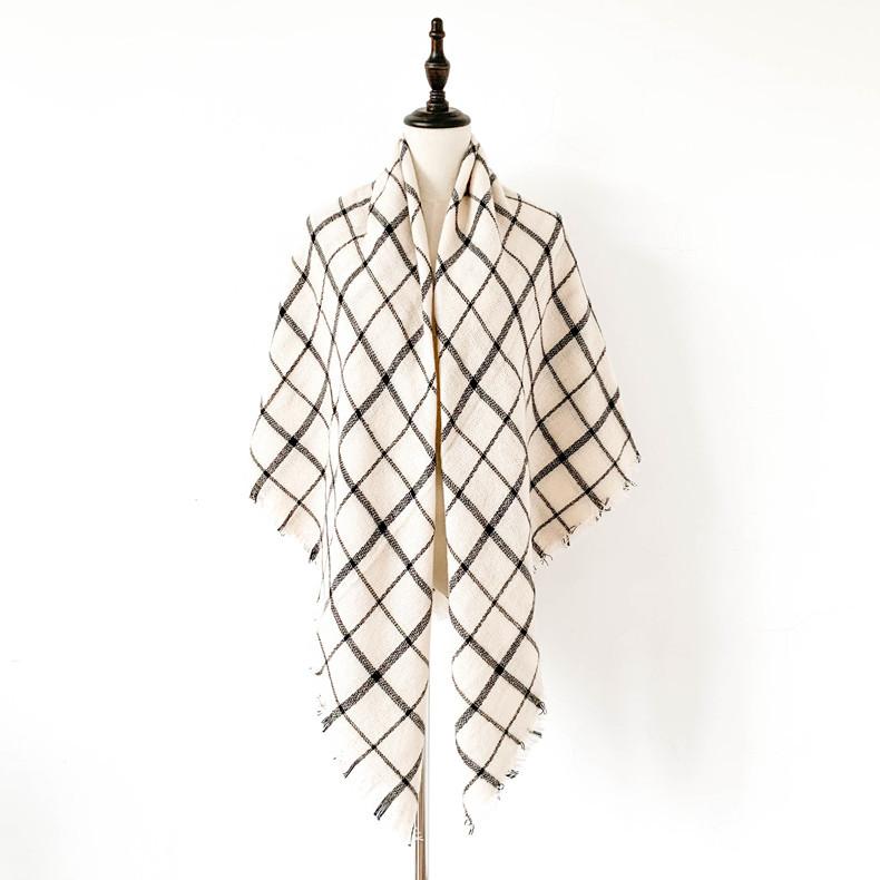 Europeo y americano nuevo círculo hilo rayas cuadrícula poliéster completo borla larga cabello bufanda cuadrada cuello chal para mujeres hombres