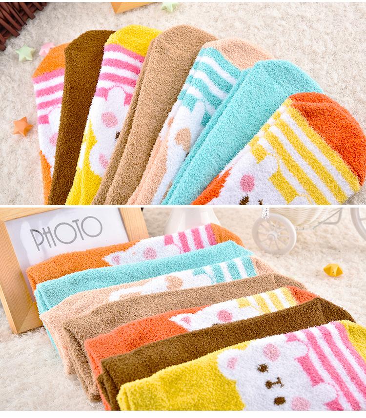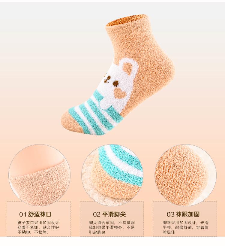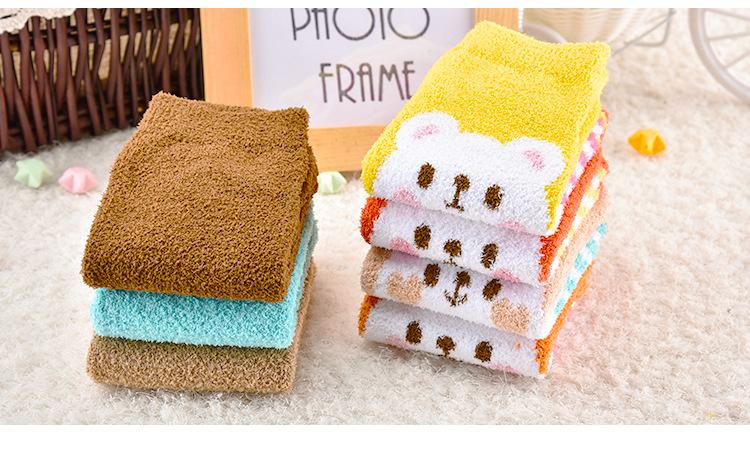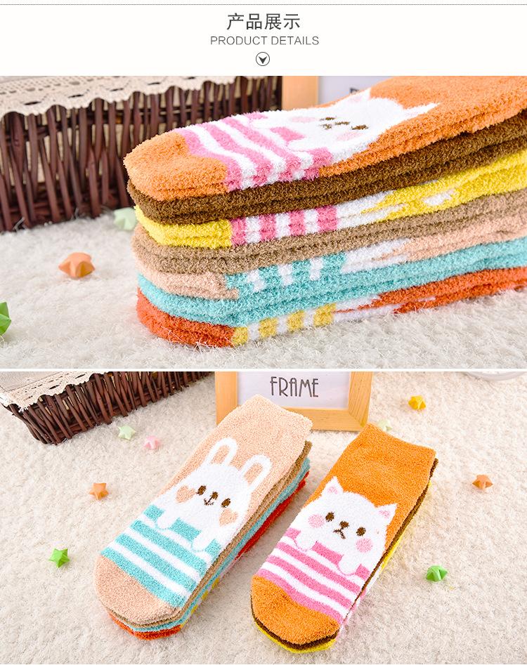 Otoño e Invierno Calcetines de Dormir Súper Suaves de Media Felpa Calcetines de Dibujos Animados para Mujer Calcetines Cálidos de Felpa de Doble Cara para Piso Calcetines Zhuji al por Mayor
