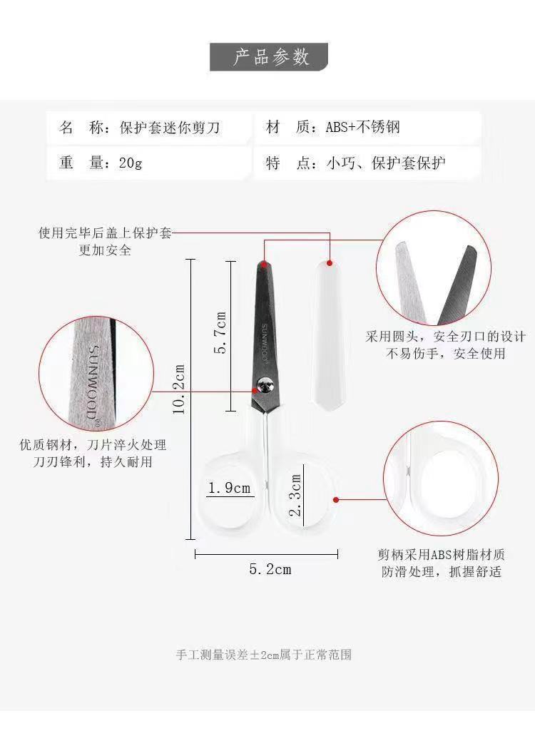 Tijeras blancas portátiles sencillas hechas a mano de acero inoxidable, tijeras de seguridad artísticas con tapa, tijeras para niños y estudiantes.