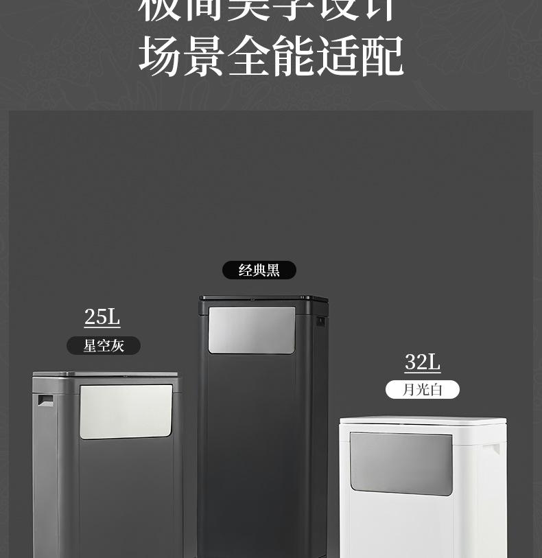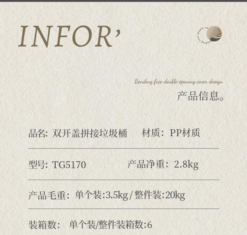 Tg5160 white (press + push plate) double-open lid trash can (25l), Tg5160 gray (press + push plate) double-ope...