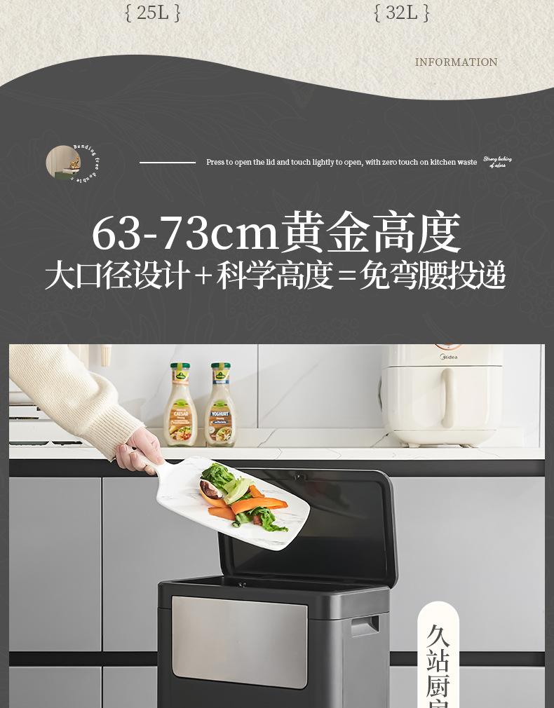 Tg5160 gray (press + push plate) double-open lid trash can (25l)