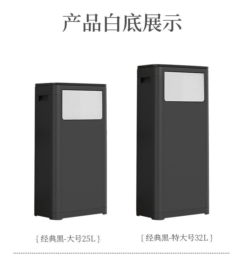 Tg5160 black (press + push plate) double-open lid trash can (25l)