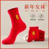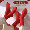 Calcetines Rojos de Otoño e Invierno para el Año del Zodíaco de la Mujer Boda Calcetines Festivos Caja de Regalo Calcetines de Media Caña de Algodón Puro Palabra de Bendición para Pareja Calcetines de Mujer