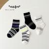 Calcetines de rayas de colores contrastantes para niños, estilo coreano, para primavera y otoño, para uso exterior, deportivos, de algodón, de tubo medio, apilados.