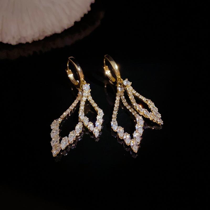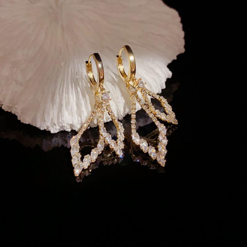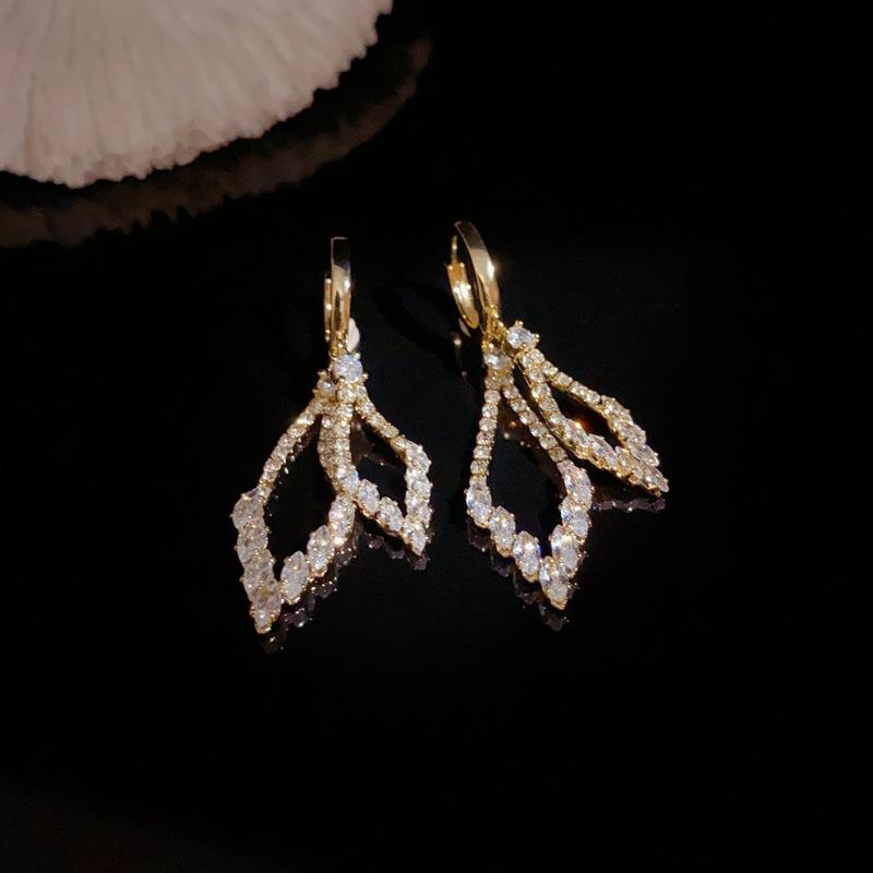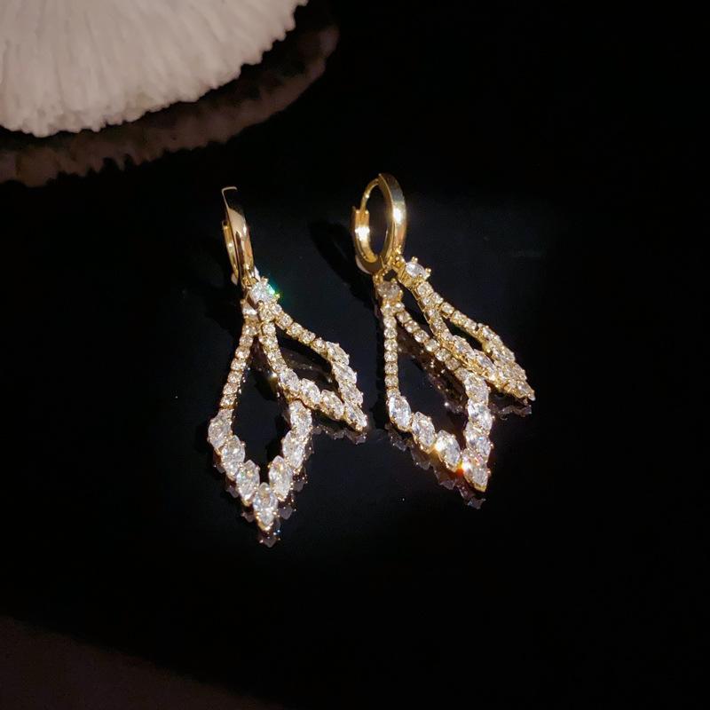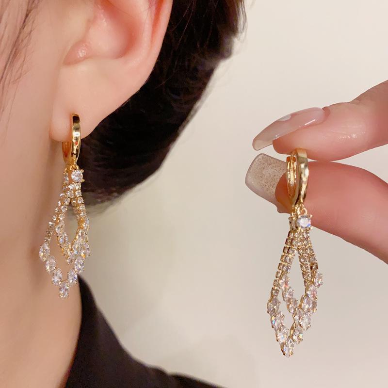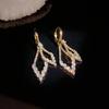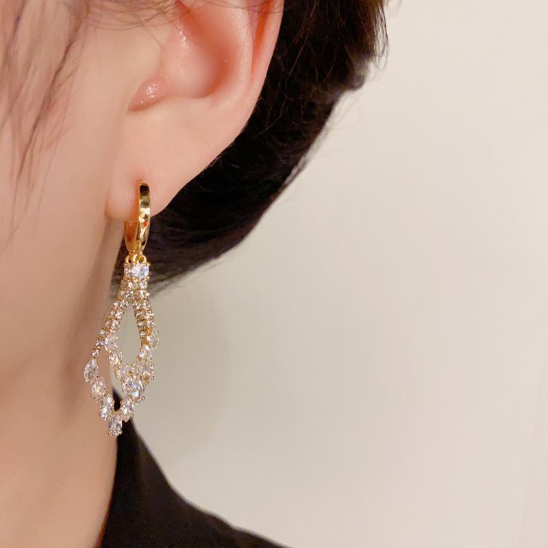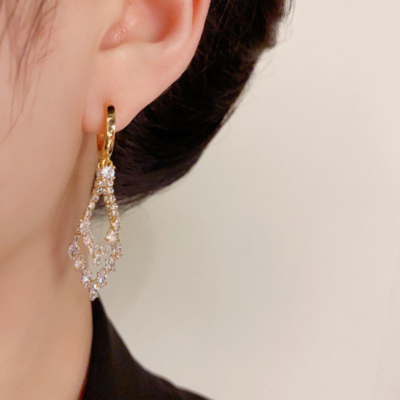 Pendientes de lujo ligeros con hebilla geométrica de doble capa de diamantes y diseño único de personalidad, venta al por mayor