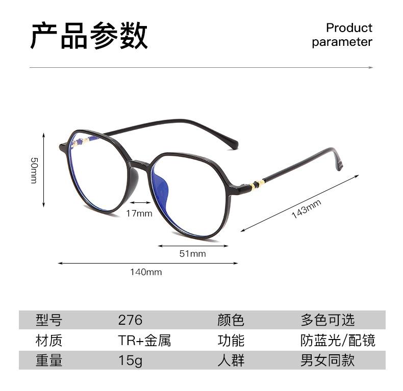 Nuevas gafas de moda estilo coreano con montura grande anti-luz azul para hombres y mujeres, gafas lisas del mismo estilo, gafas con montura moderna, 276 en stock