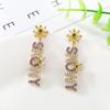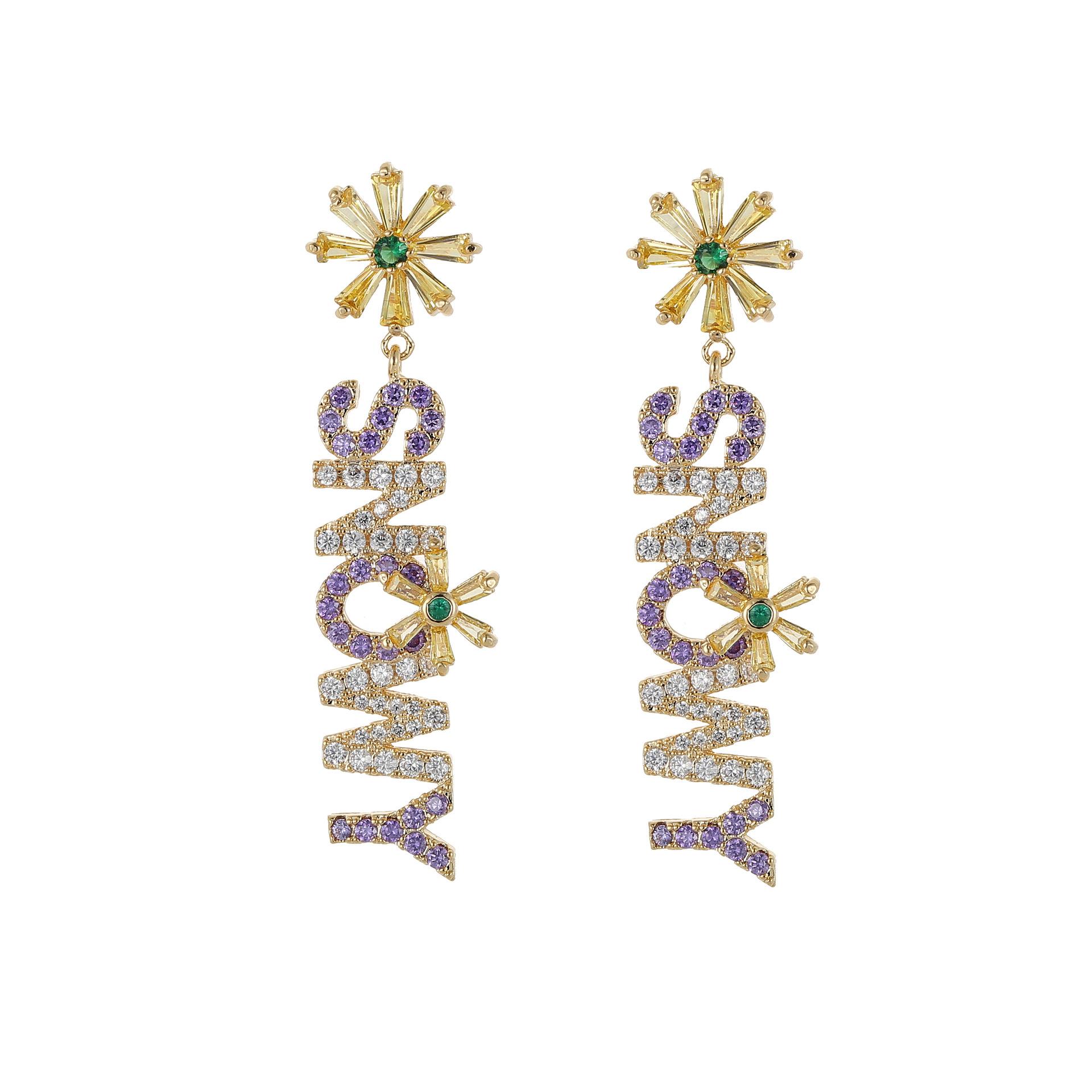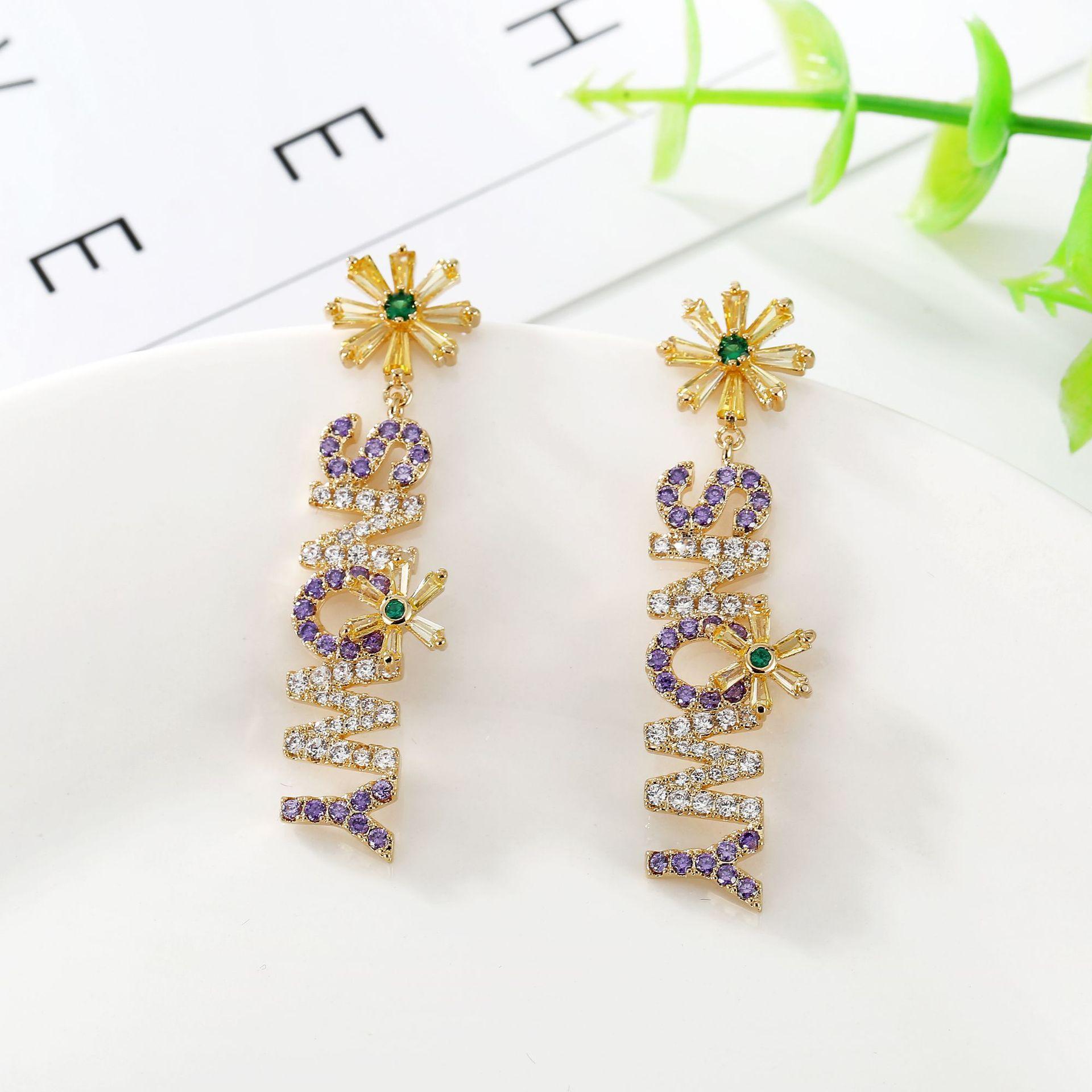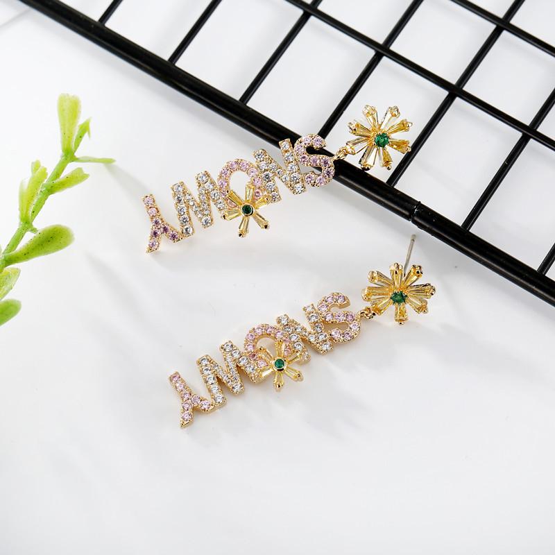 Pendientes con forma de flor de circón y letras SNOWY para damas, fabricantes al por mayor