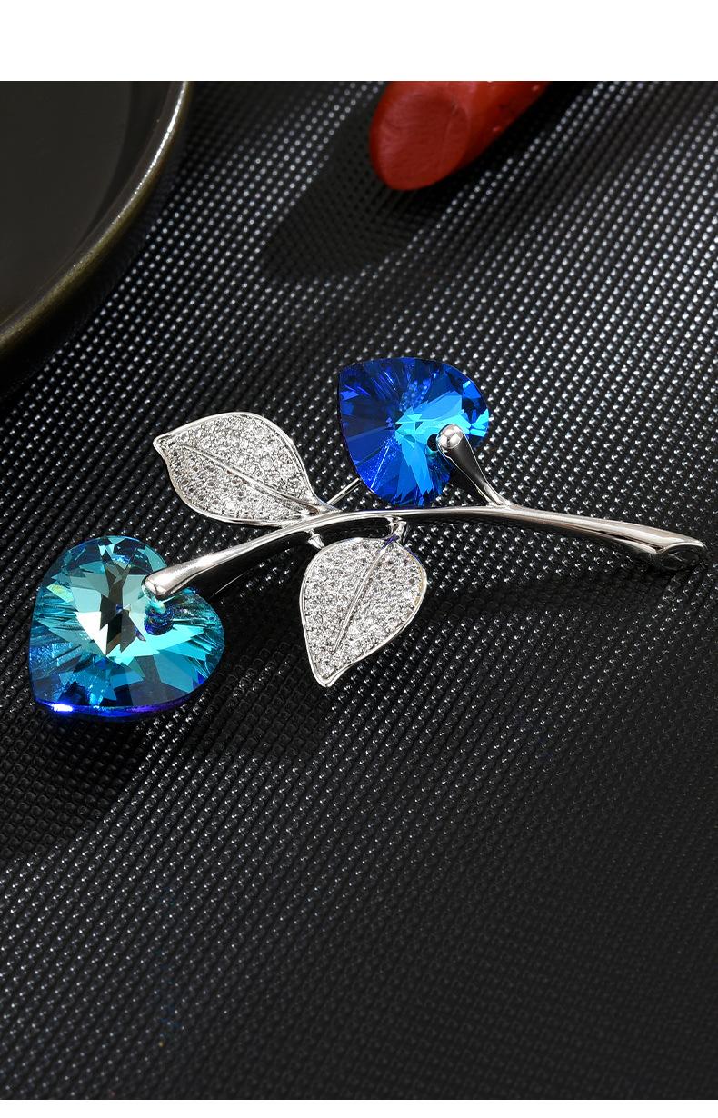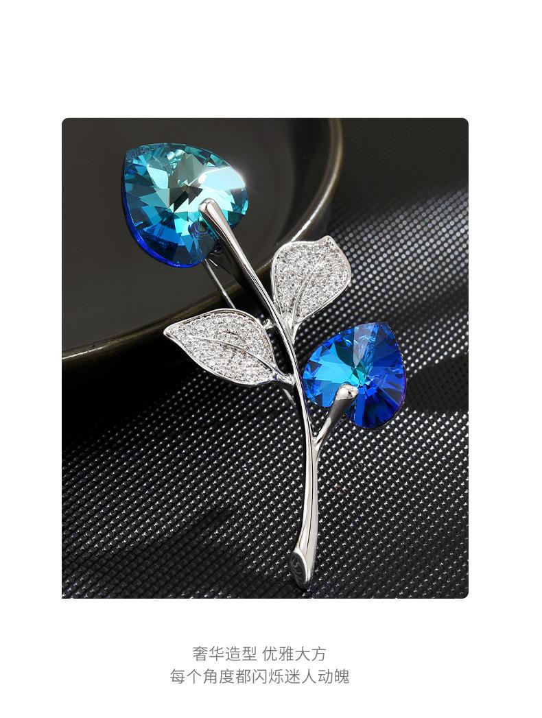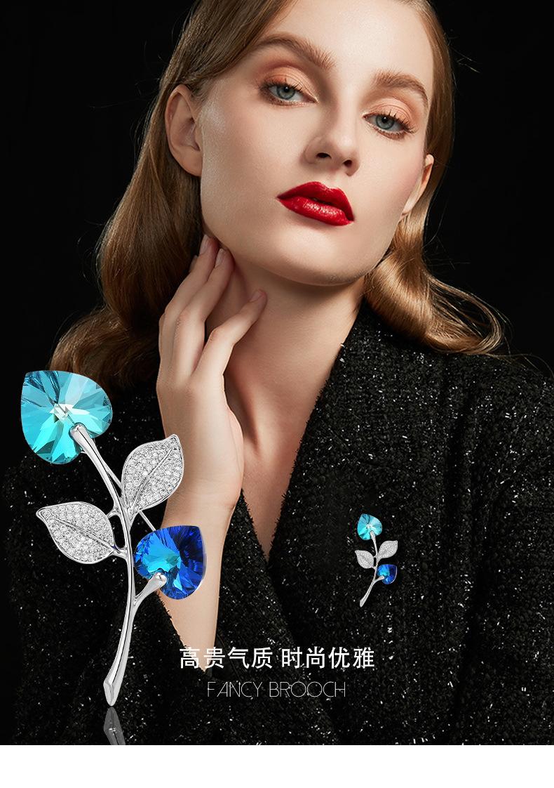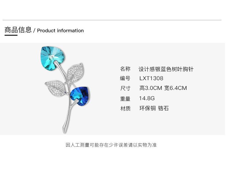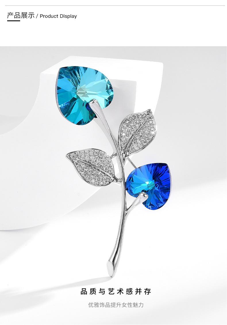 Broche de accesorios para abrigo con diseño de hoja azul plateada INS, antiexposición, de una pieza, elegante y exquisito.