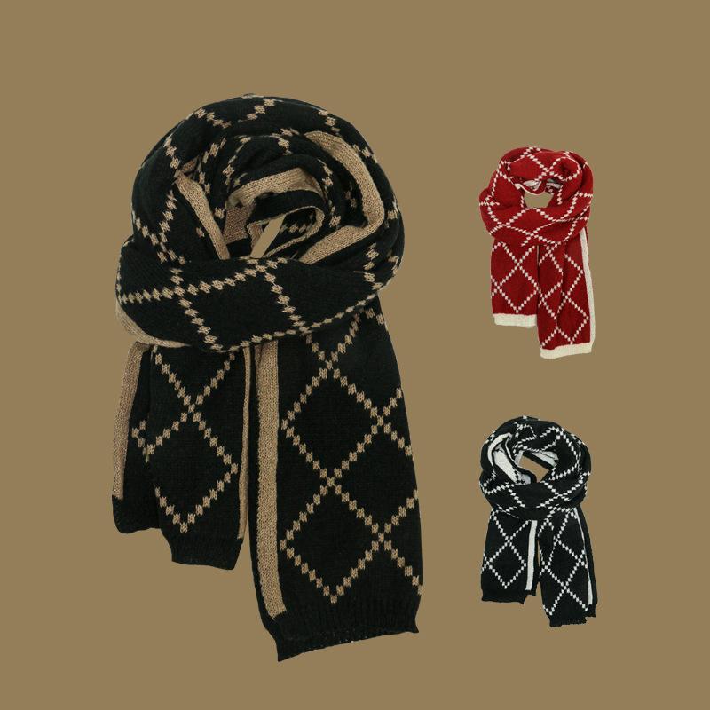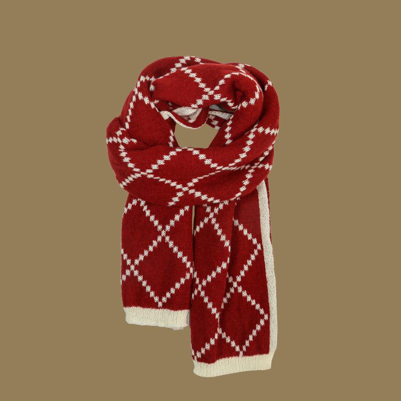 Large diamond plaid scarf-burgundy, Large diamond plaid scarf-black coffee color, Large diamond plaid scarf-white, Camel