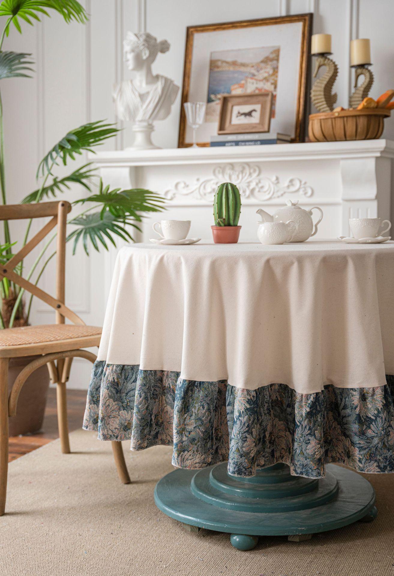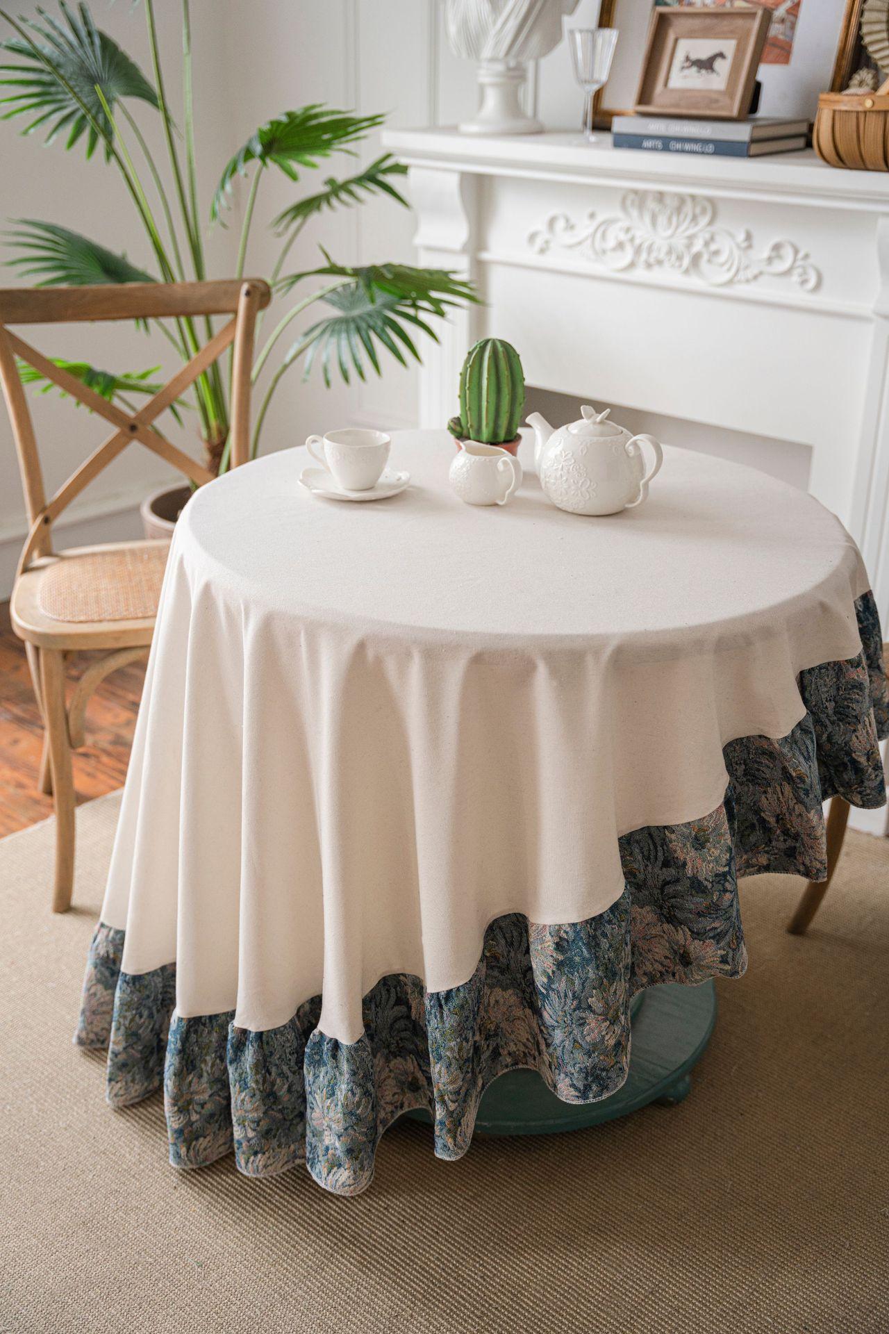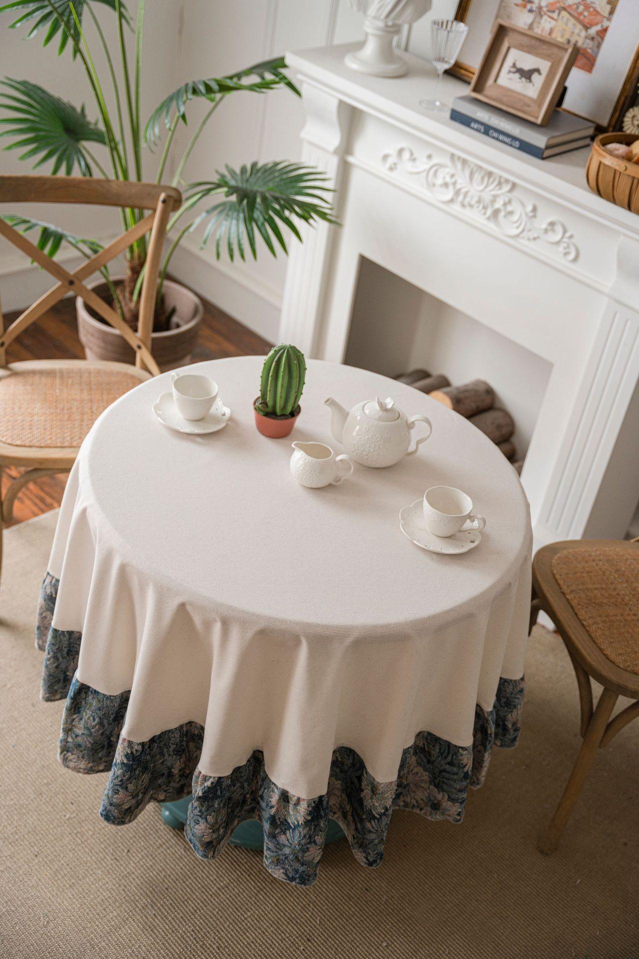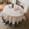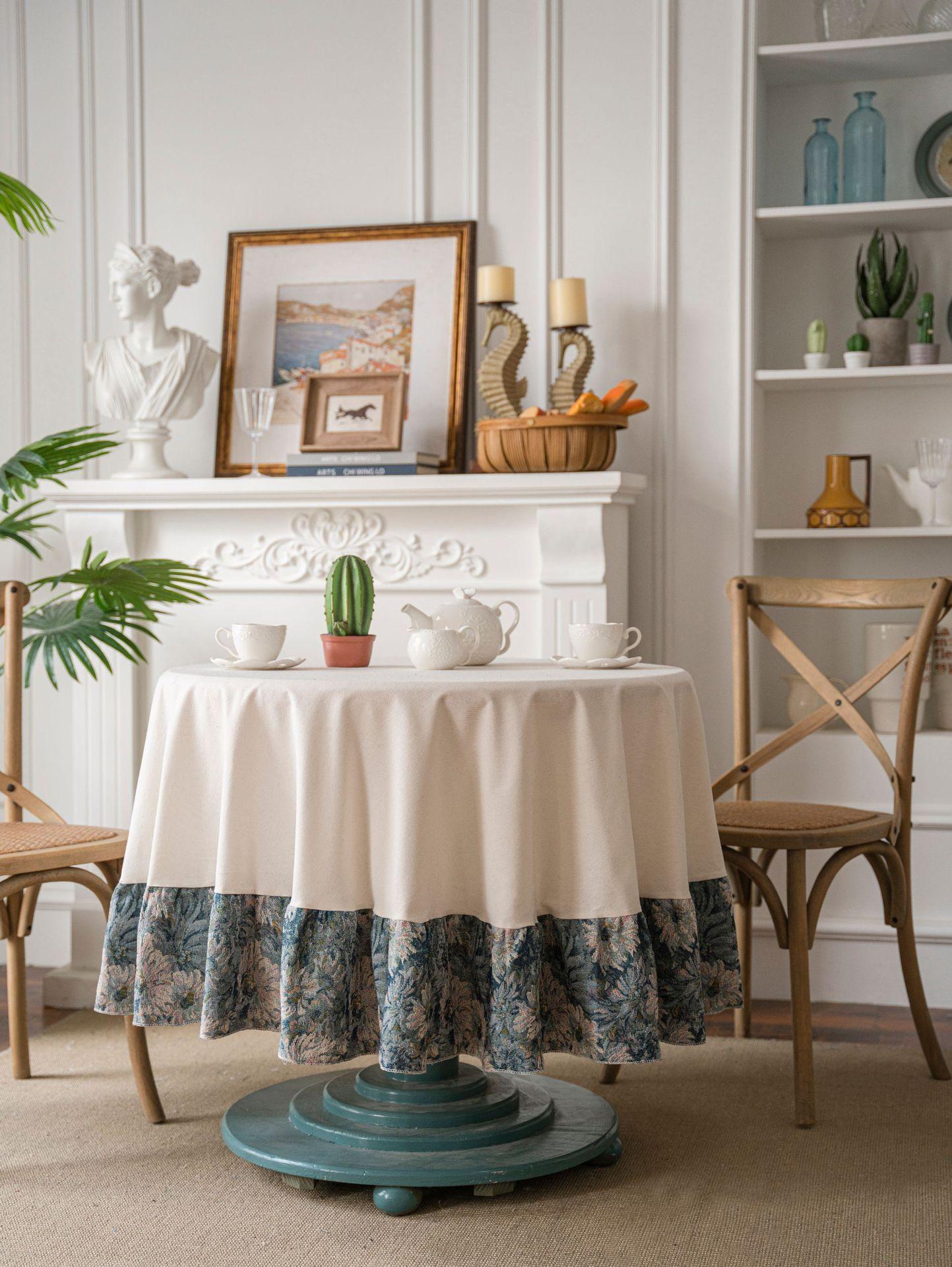 Mantel americano Imaki Rhyme de color liso con flores azules en contraste, mantel de comedor redondo y grueso, suministro directo de fábrica.