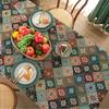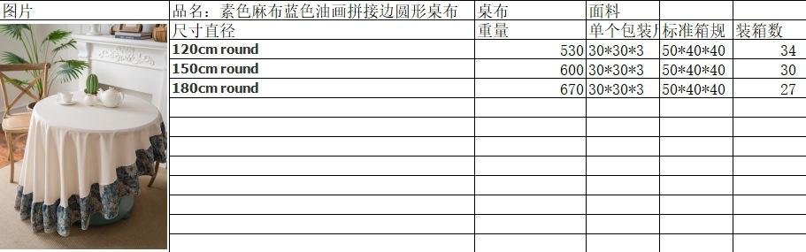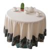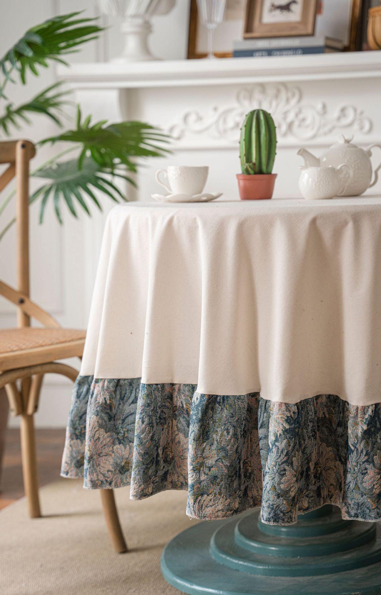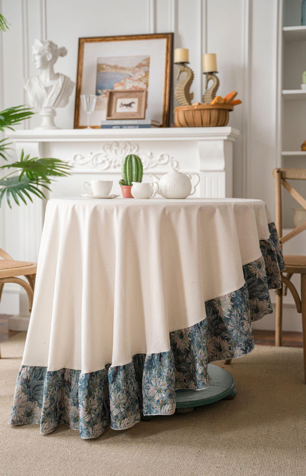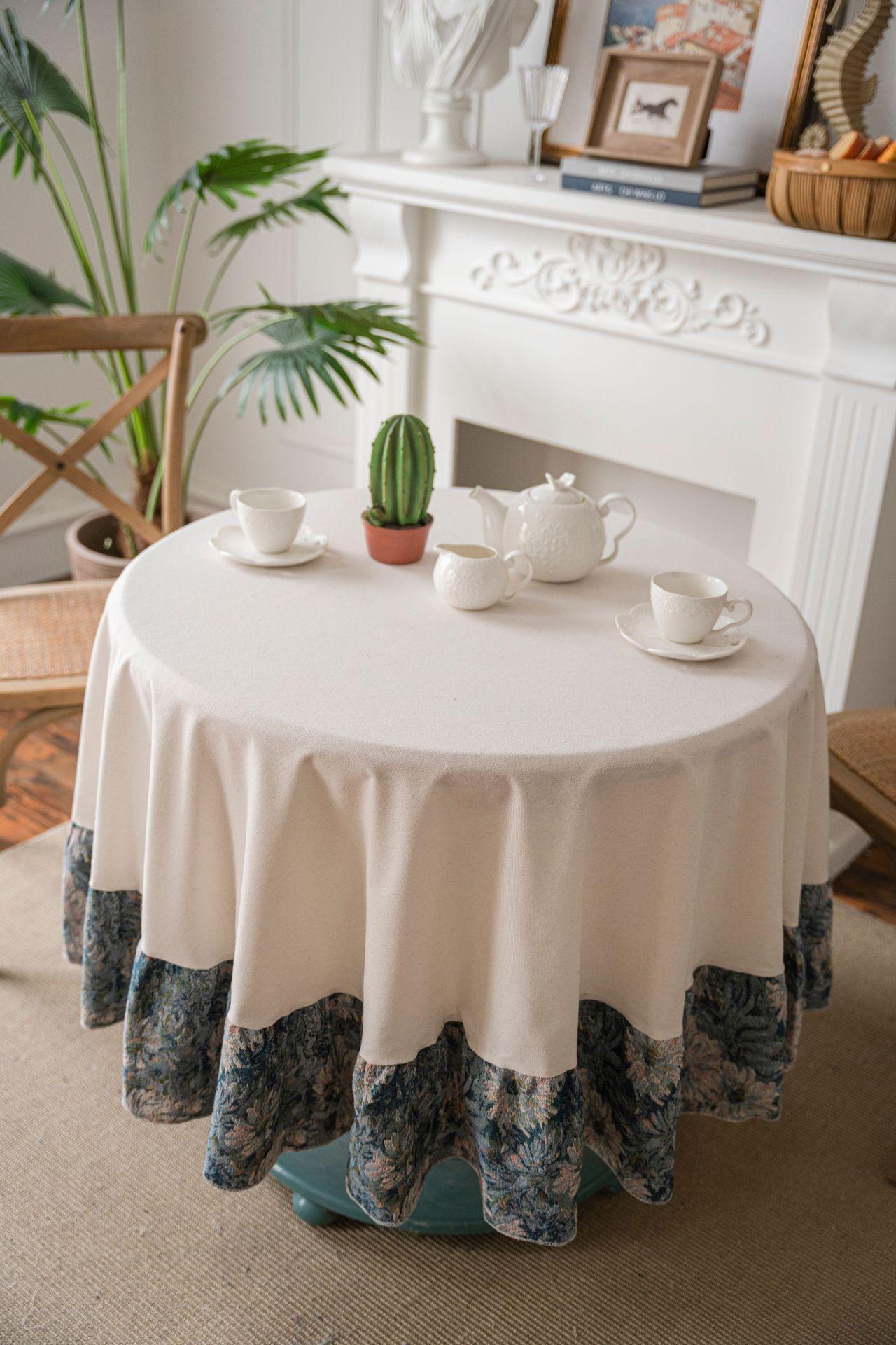 Mantel americano Imaki Rhyme de color liso con flores azules en contraste, mantel de comedor redondo y grueso, suministro directo de fábrica.