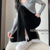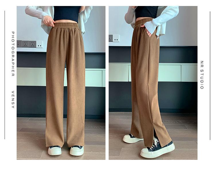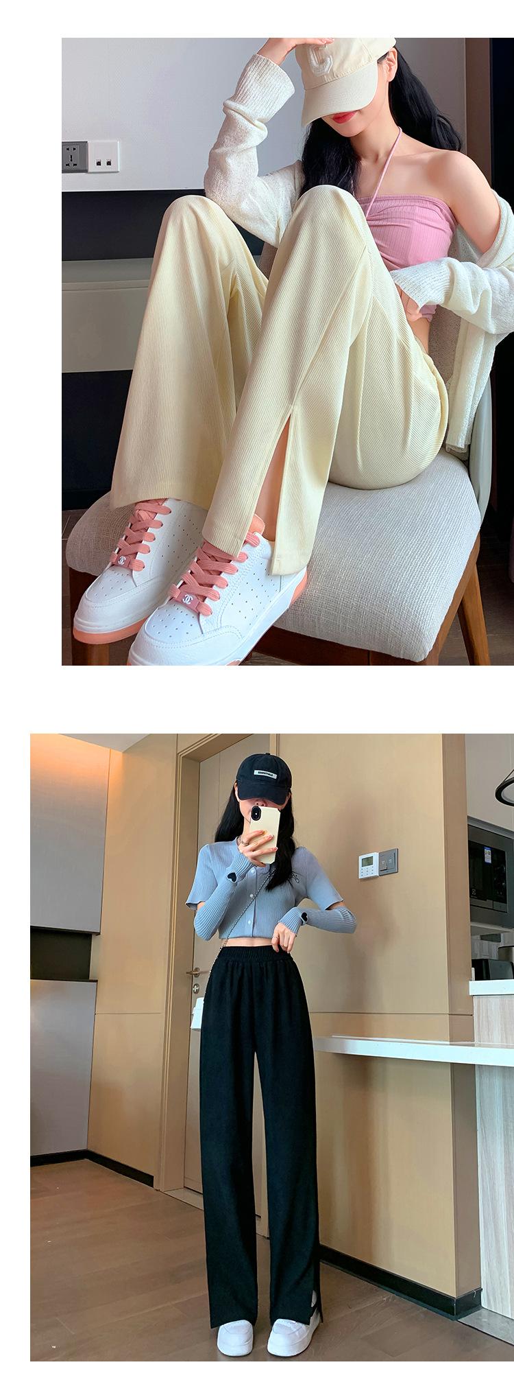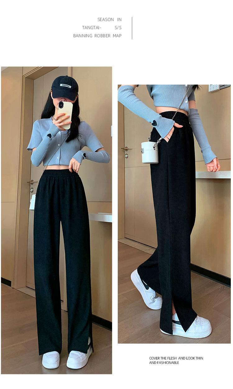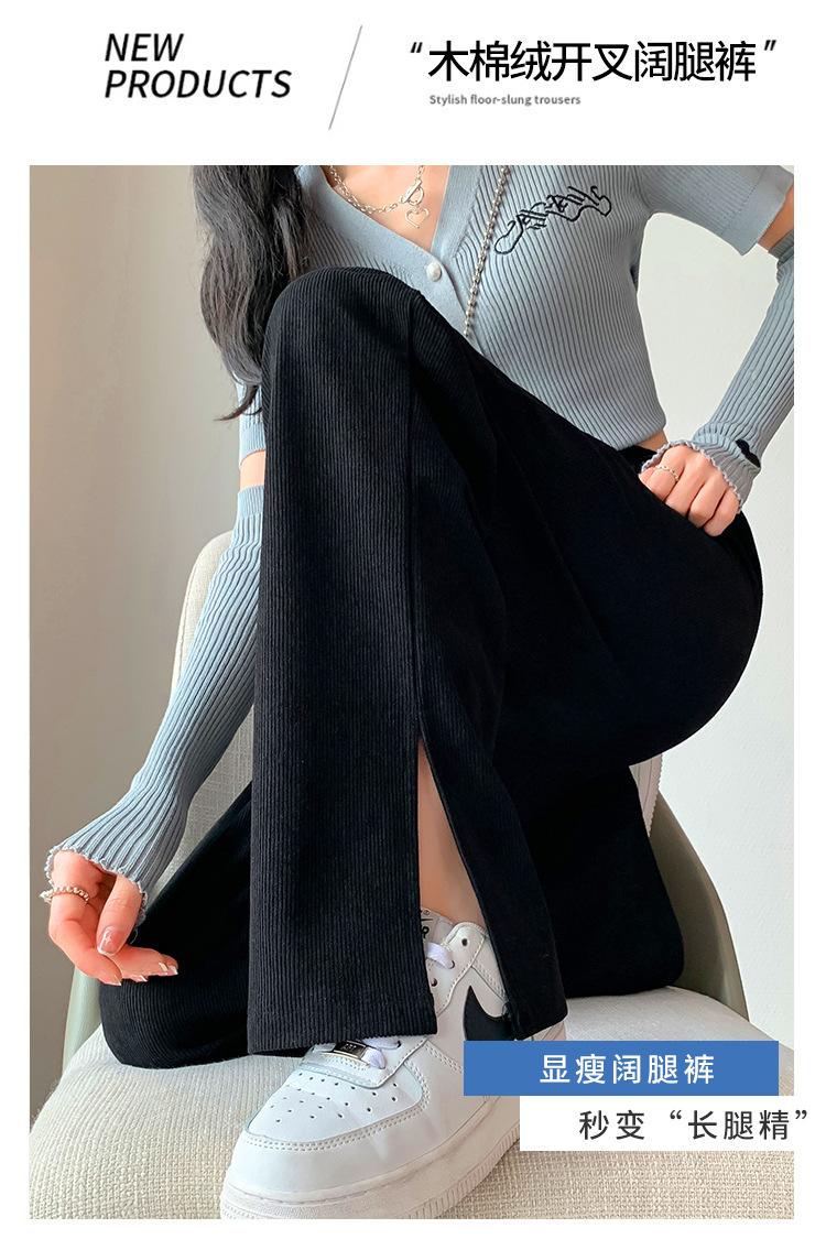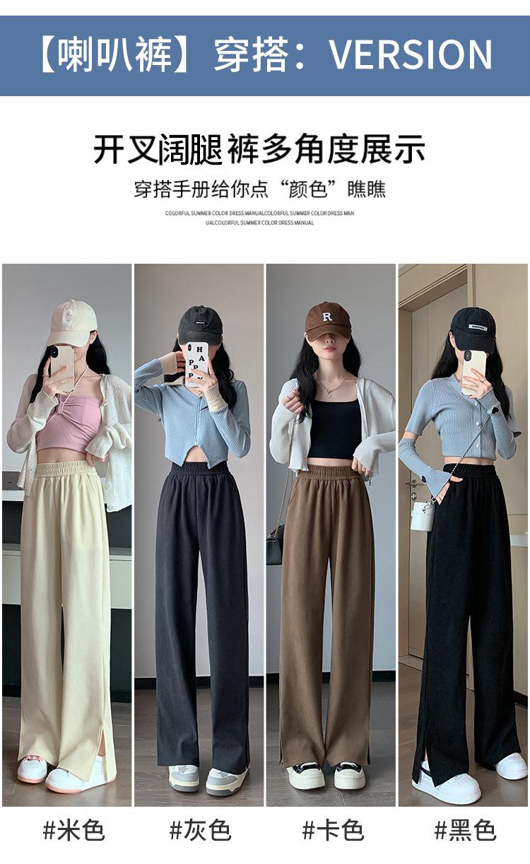 Pantalones anchos de pierna ancha para mujer, pantalón holgado con abertura lateral, estilo casual, de primavera