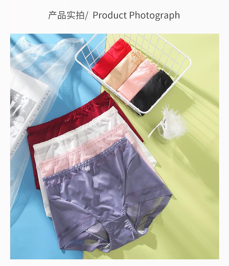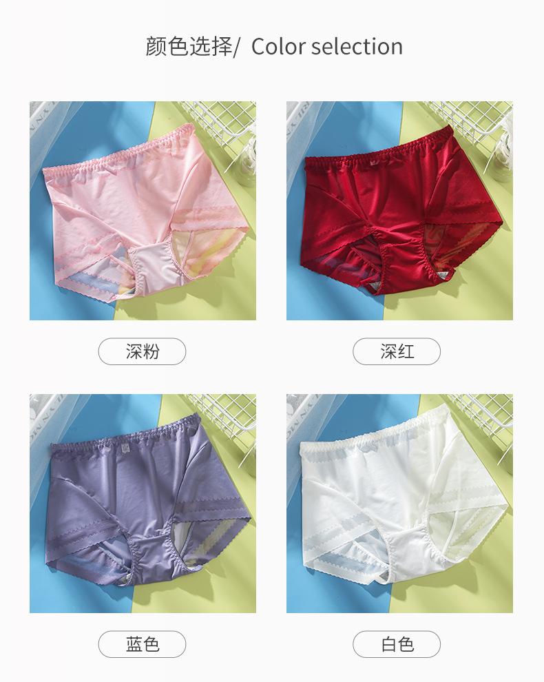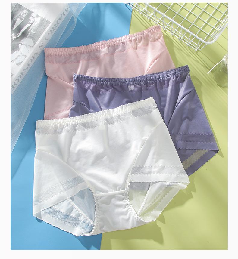 Ropa interior de seda de hielo de color sólido para mujer, Calzoncillos de encaje elástico para mujer, Transpirable, Ajustado, Sin costuras, Entrepierna de algodón puro, Antibacteriano, Cintura media